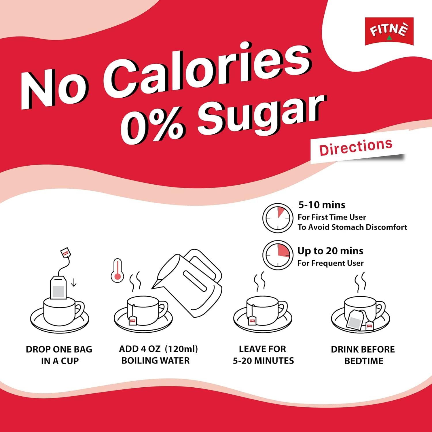 FITNE Strawberry Herbal Detox Tea Fruity Myrobalan Rhubard Senna Infusion Cleansing High Antioxidant No Calories Stevia Sweetener, 12 Tea Bags