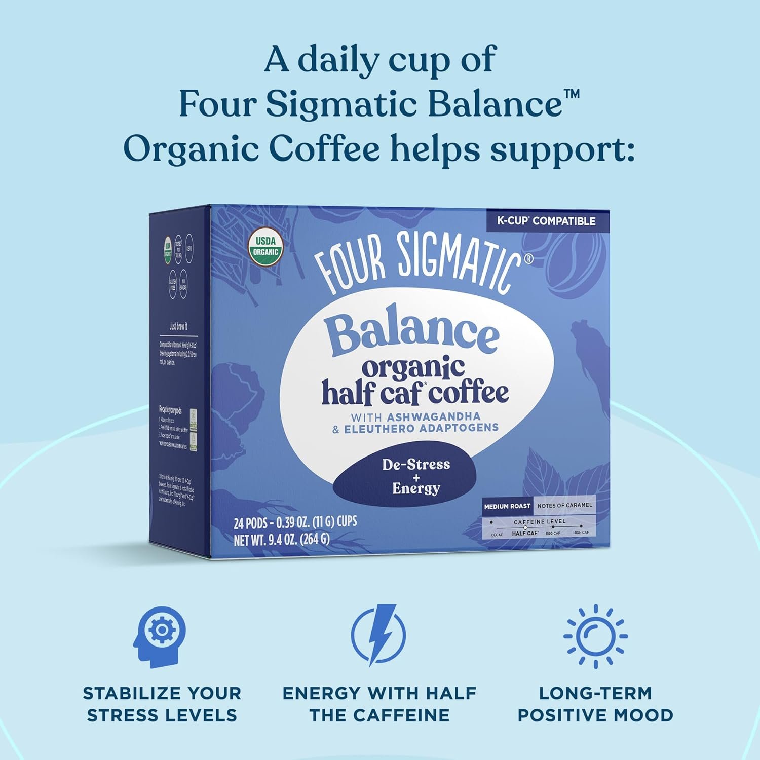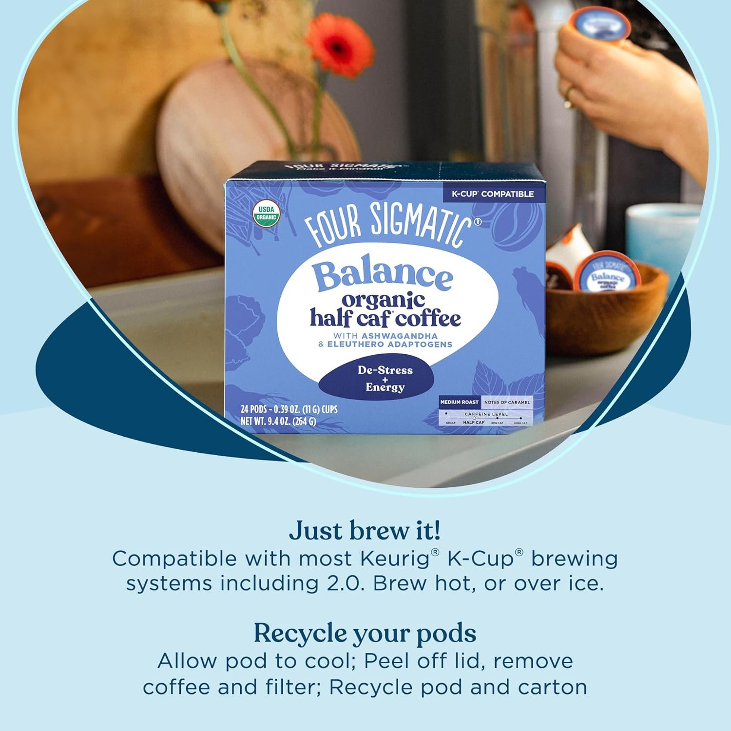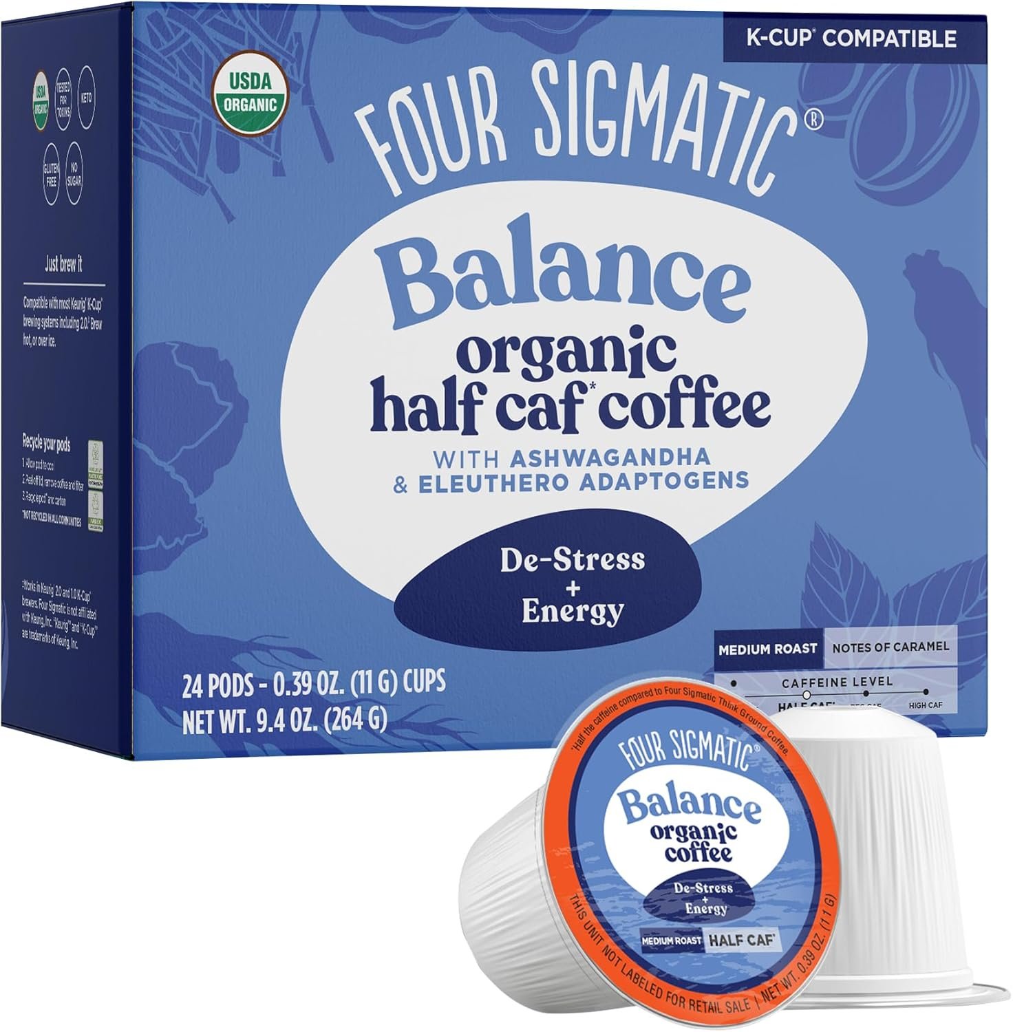 Four Sigma Foods Four Sigmatic Adaptogen Coffee k-cups, Medium Roast Ground Coffee with Ashwagandha Chaga&Tulsi Immune Support and stress relief keto,24 count