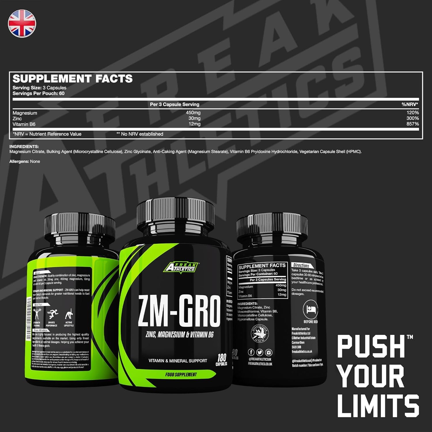 Freak Athletics ZM-GRO – Zinc, Magnesium & Vitamin B6 Capsules | 180 Vegan Capsules | Muscle Recovery, Sleep & Immune Support | High Absorption Formula | Made in The UK