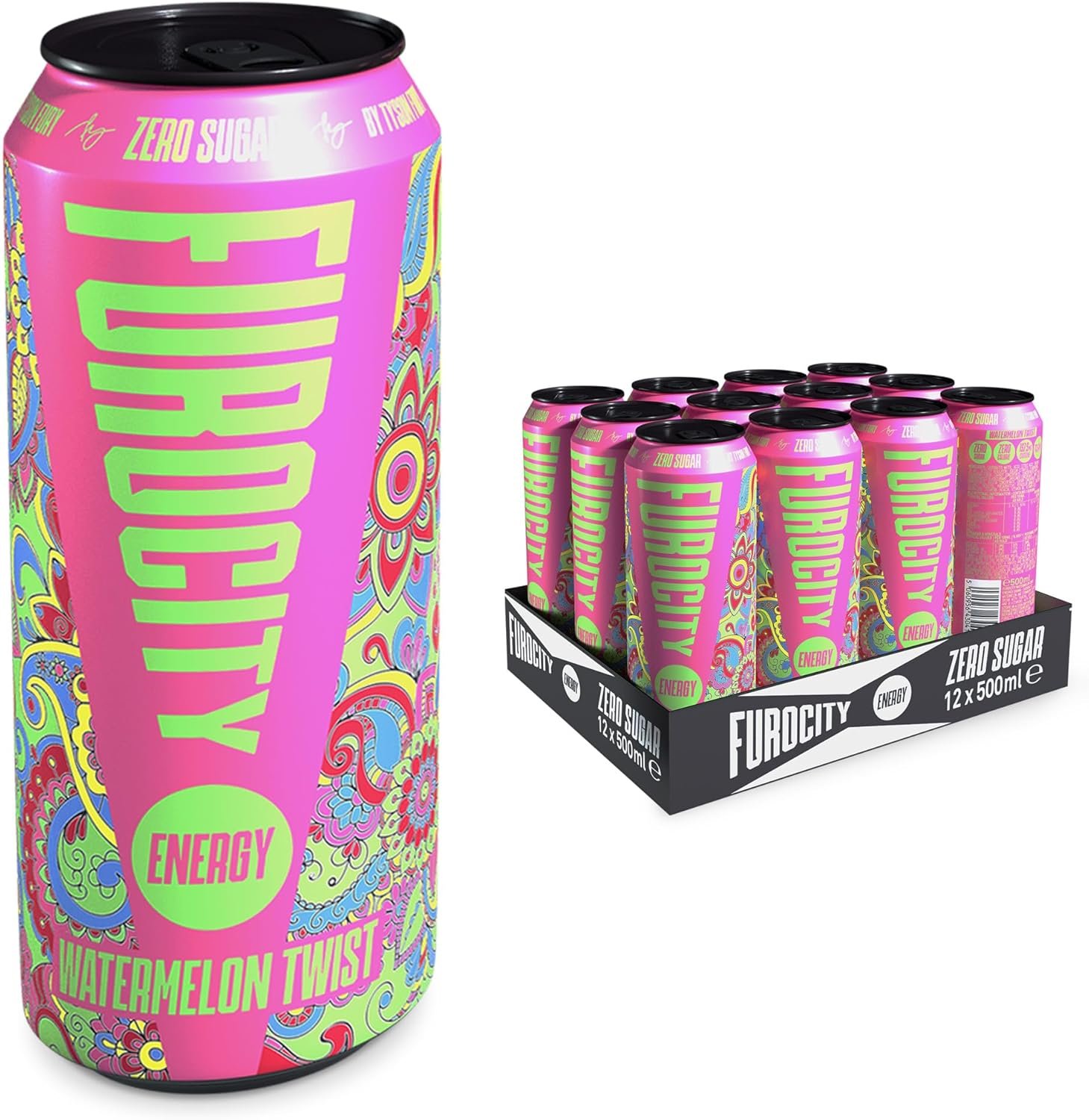 HIT YOUR DAY HARDER: Furocity by Tyson Fury delivers Watermelon Twist energy drinks in 500ml cans, packed with 157mg of caffeine per serving. Enjoy a sugar-free boost to power through your day with intense energy and fruity flavour