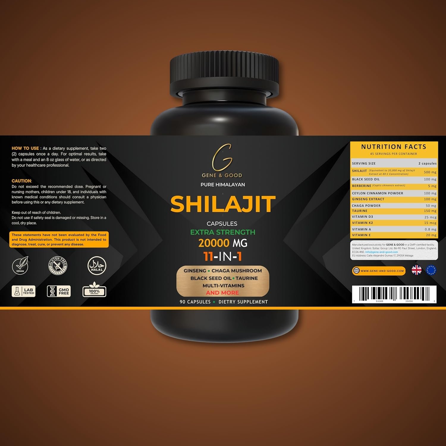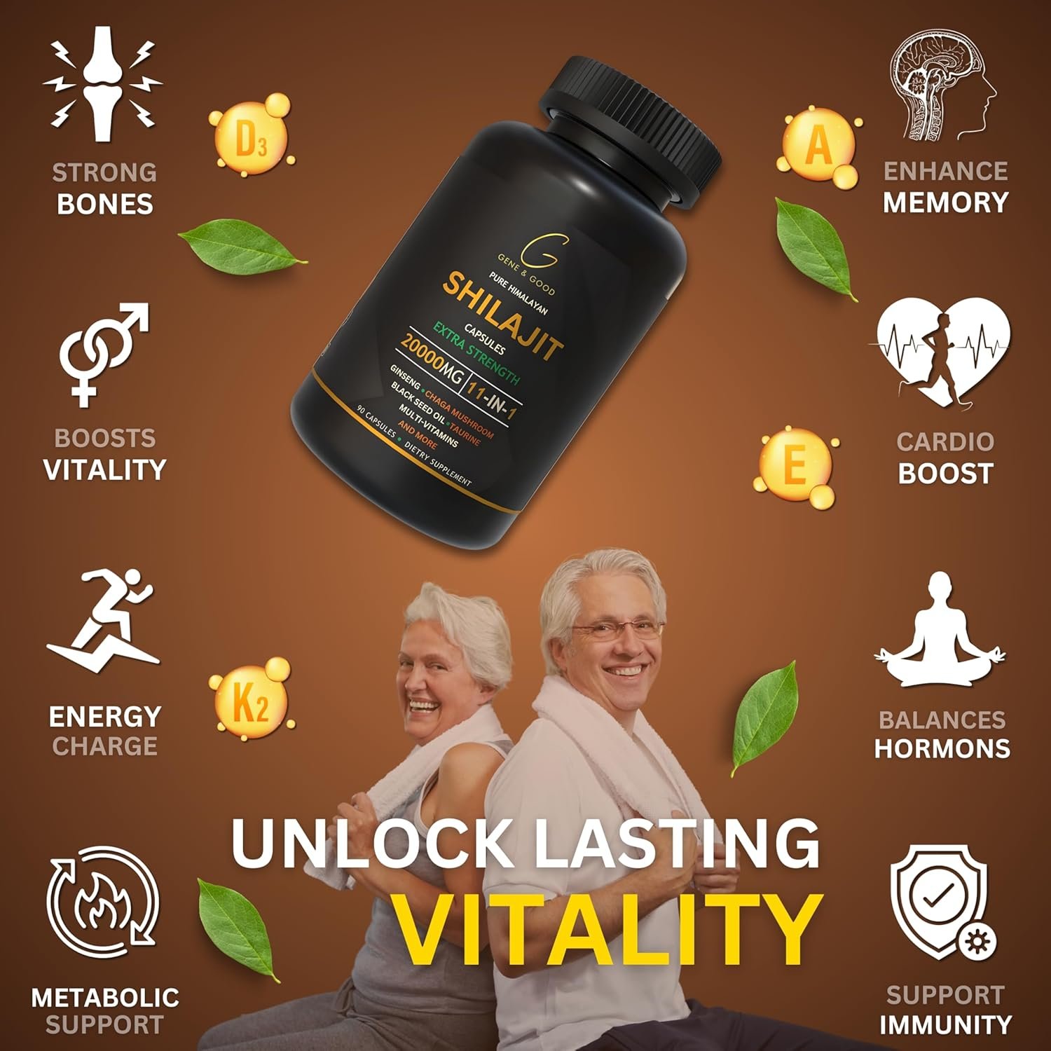 Gene & Good® Shilajit Capsules – Pure Himalayan Shilajit with 70% Fulvic Acid, 85+ Essential Minerals, Immune System Booster – Natural Himalayan Shilajit Mineral Supplements, 90 Capsules