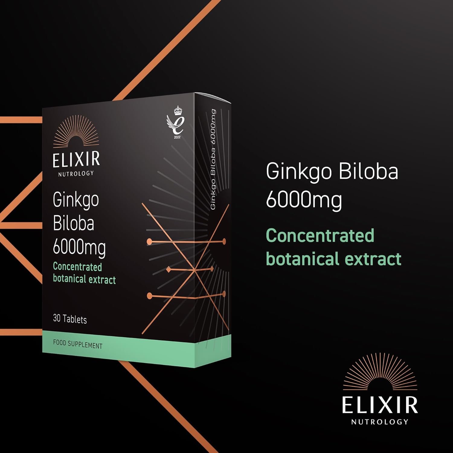 Ginkgo Biloba 6000mg 30 Tablets – 50:1 Extract, Equivalent to 6000mg Leaf Powder, Rich in Ginkgo Flavone Glycosides & Terpene Lactones, Supports Well-Being. Made in The UK