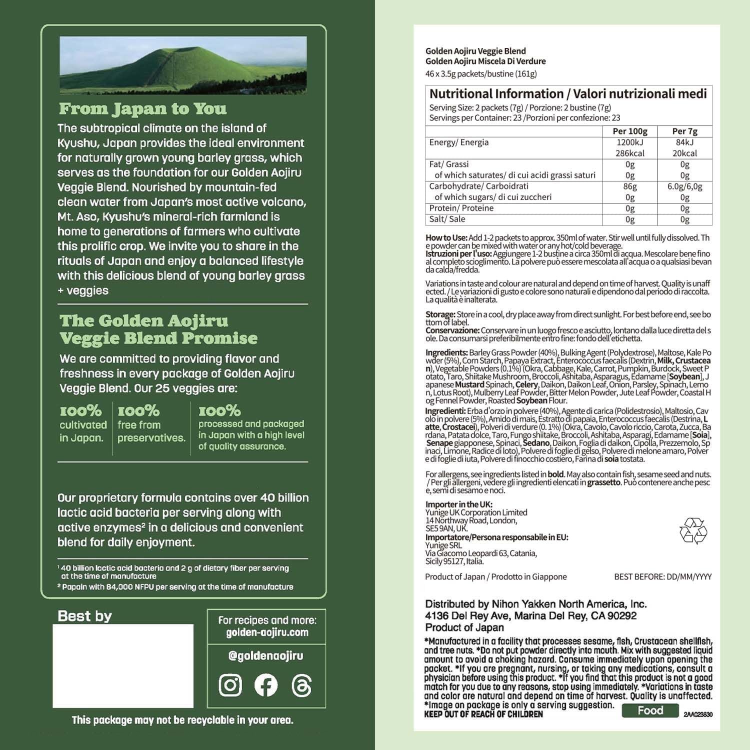 🧳 Travel-Ready, Clean & Authentic — 46 packets: Gluten-free and preservative-free, inspired by Japan’s centuries-old “green juice” tradition. Each packet is sealed for freshness and purity — convenient wellness support, anytime, anywhere.