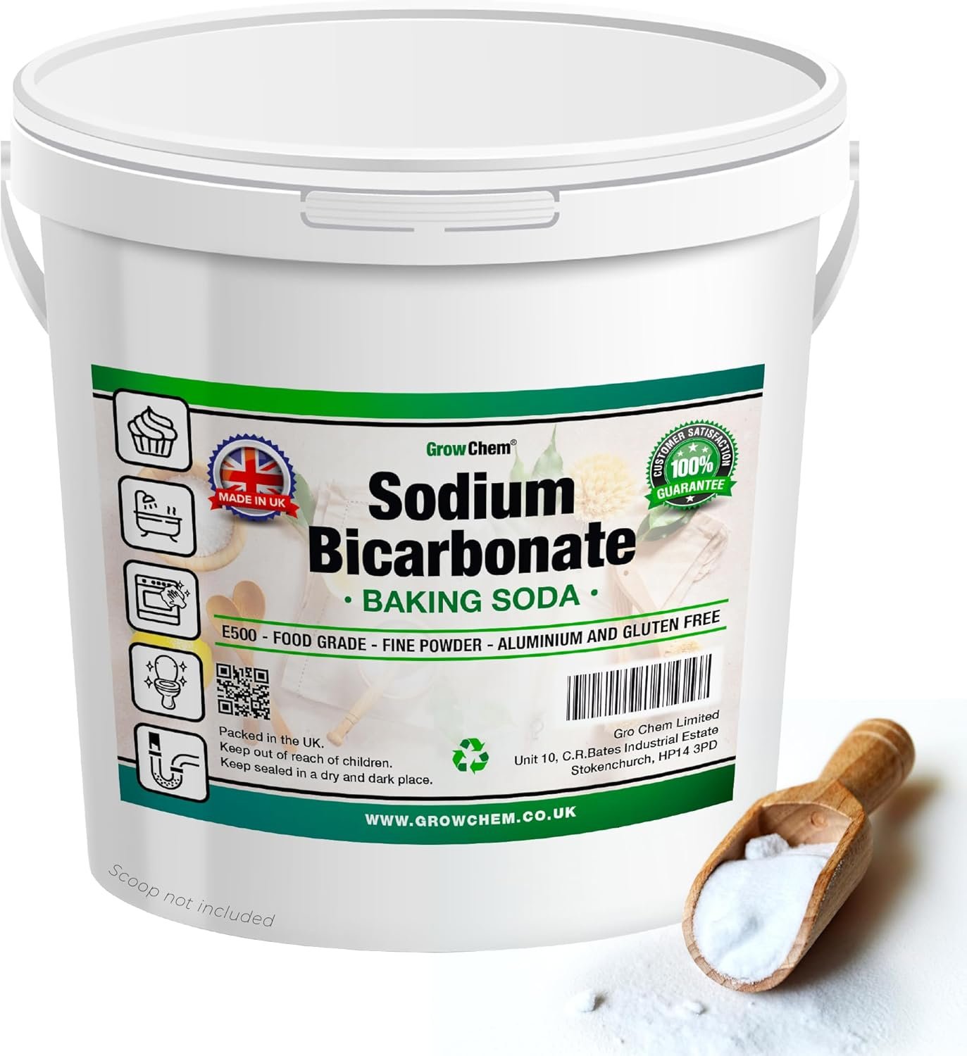 Grow Chem Baking Soda, Sodium Bicarbonate (5kg Bucket) UK MADE Pure Baking Soda for ECO Friendly Cleaning, Baking, Bath Bombs, Odour Removal and Teeth Cleaning