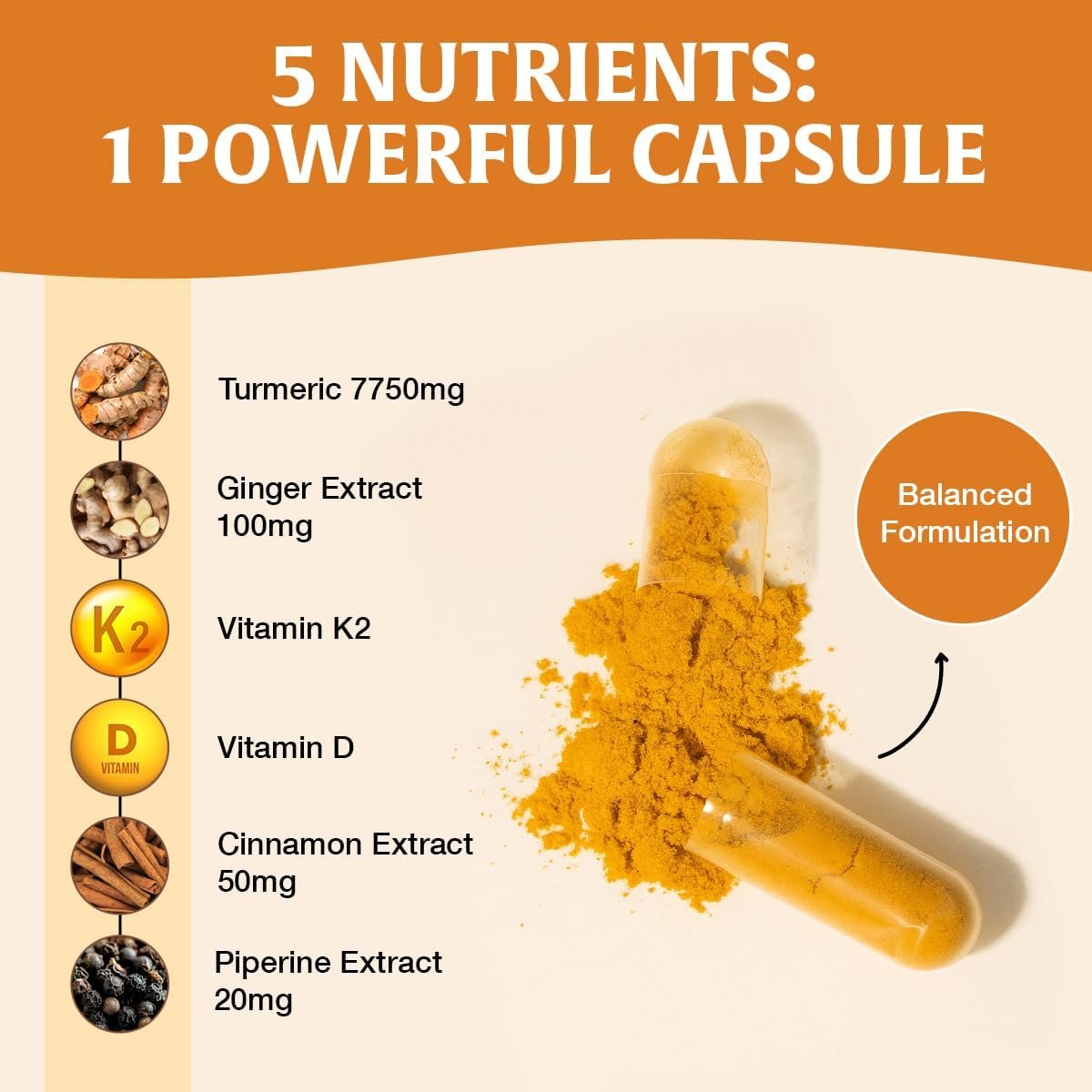 Enhanced with Ginger, Cinnamon & Black Pepper: Thoughtfully formulated with Ginger Extract (5% Gingerols), Cinnamon Extract (10%), and Black Pepper Extract (95% Piperine) — a synergistic blend traditionally paired with turmeric.