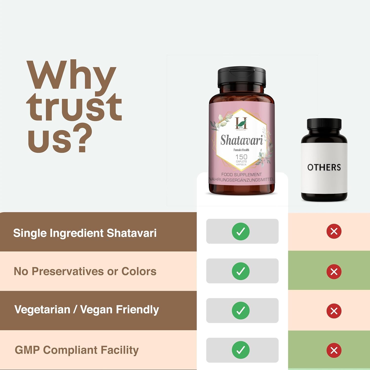 H&C Shatavari Caplets/Tablets (Asparagus Racemosus) – 750mg, 120 Caplets | Women Health Supplement