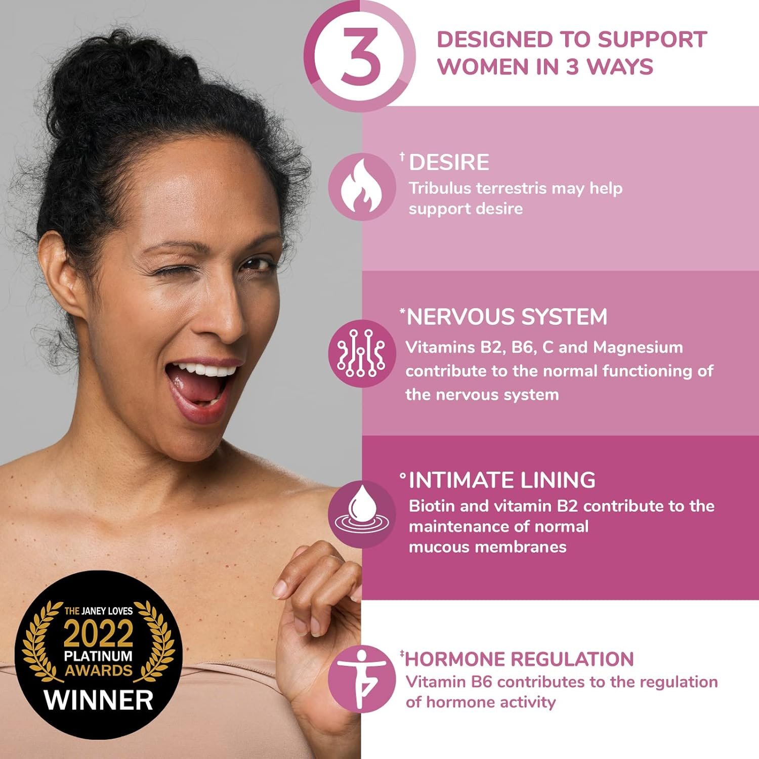 DAILY SUPPLEMENTS designed to support nutrition, wellbeing and desire in women during midlife and beyond