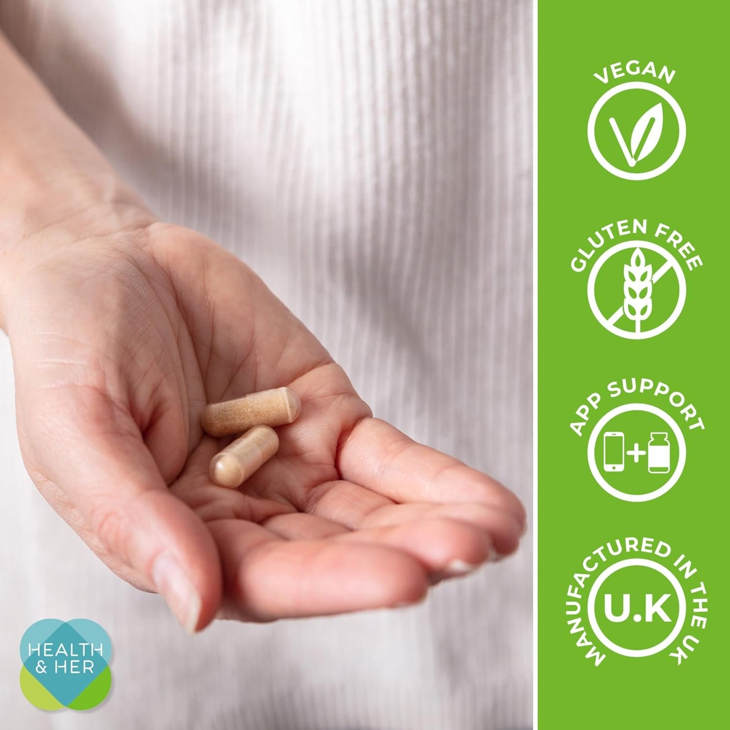 Health & Her Menopause Supplements for Women – Multi-Nutrient Wellbeing Support – Wellbeing for Menopause – 1 Month Supply, 60 Capsules – Vegan