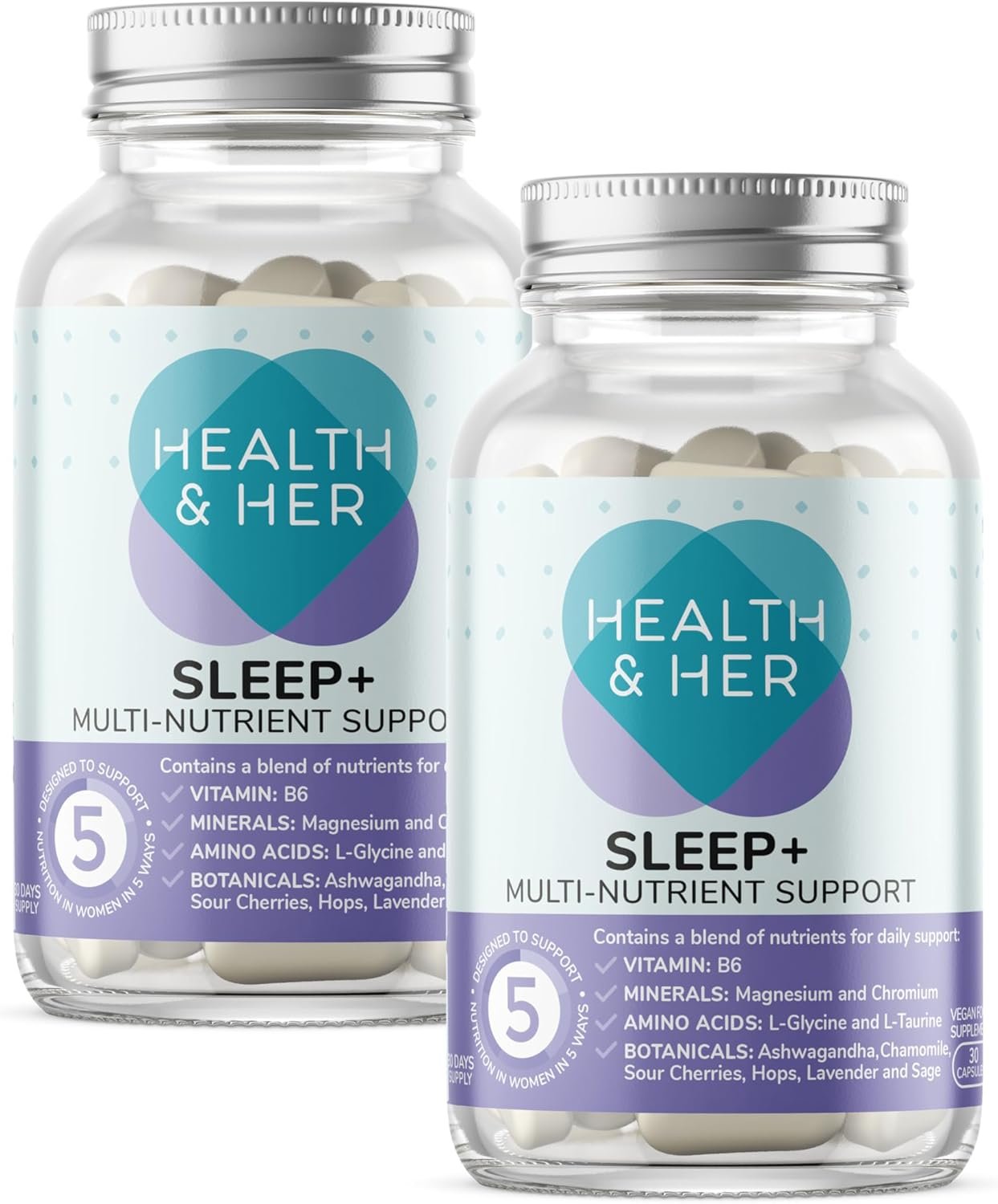 Health & Her Sleep+ Supplements for Women – Women’s Multivitamin with Lavender, Chamomile & Magnesium – Vegan, Gluten-Free – 2 Month Supply, 60 Capsules