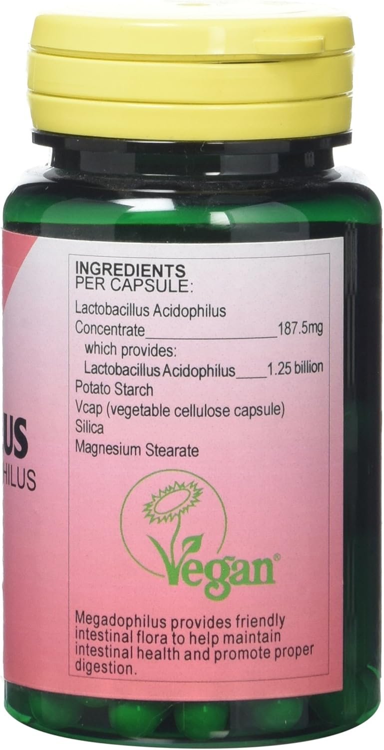 60 VCaps of 1.25 Billion Lactobacillus Acidophilus probiotic bacteria in a gelatin free capsule, to support the immune system and improve digestive health and nutrient absorption.Free from sugar, lactose, yeast, gluten and wheat.