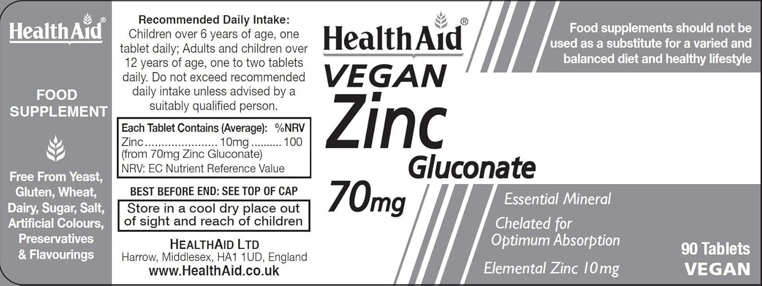 HealthAid Zinc Gluconate 70mg – 90 Tablets