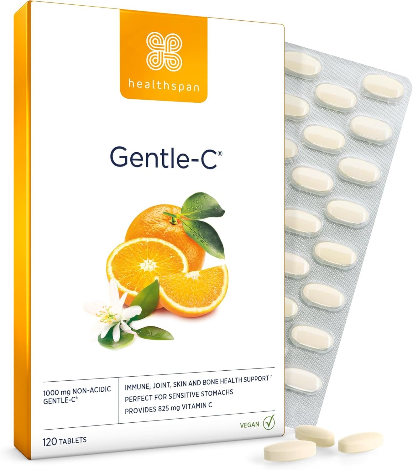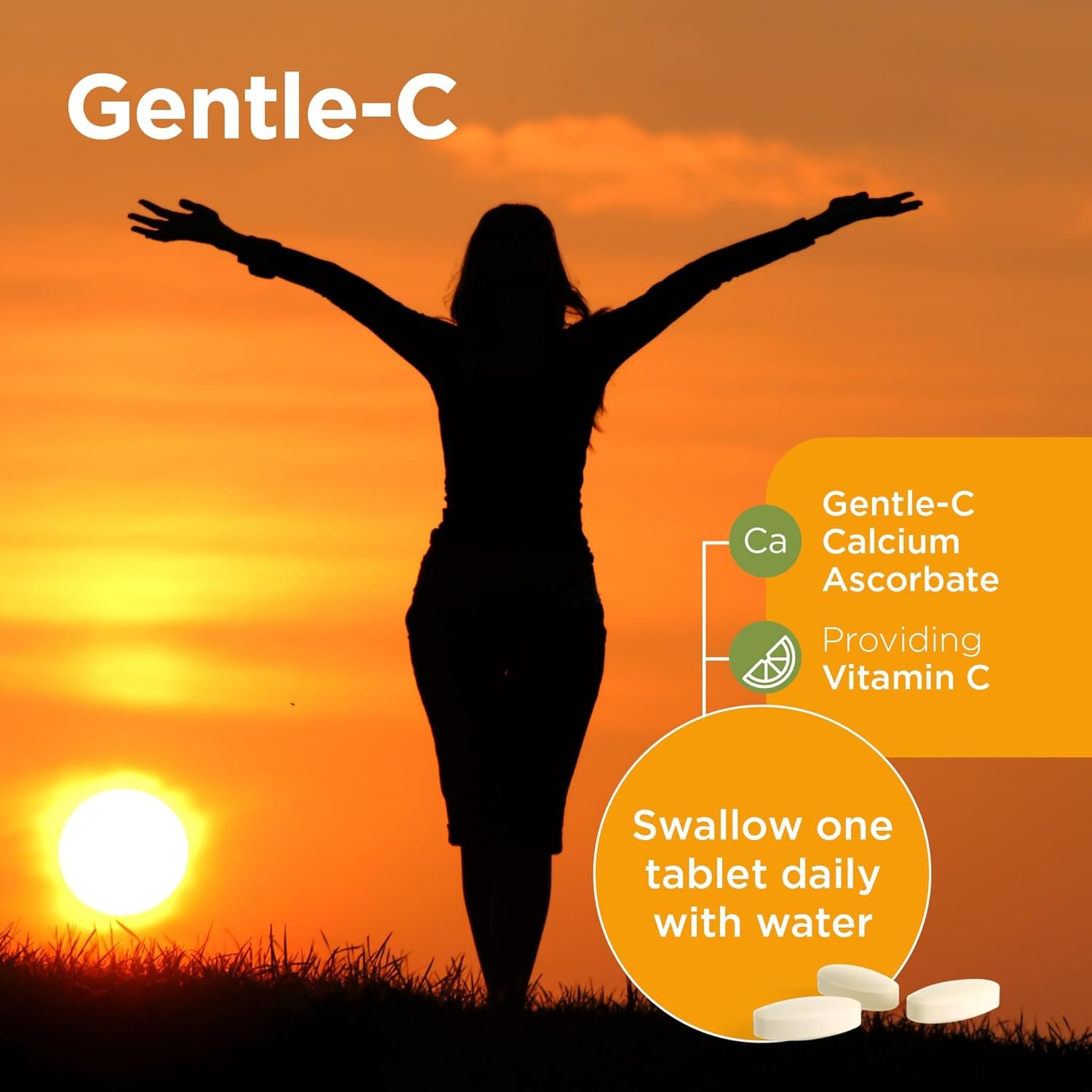 WHY CHOOSE HEALTHSPAN’S GENTLE C? They use a unique form of vitamin C known as calcium ascorbate. This form is neutralised and non-acidic, making it ideal for anyone with a sensitive stomach. What’s more, each tablet of Gentle-C provides 1,000mg calcium ascorbate, providing 815mg vitamin C. That’s equivalent to 1,019% NRV, to help safeguard your immune system from vitamin C deficiency.