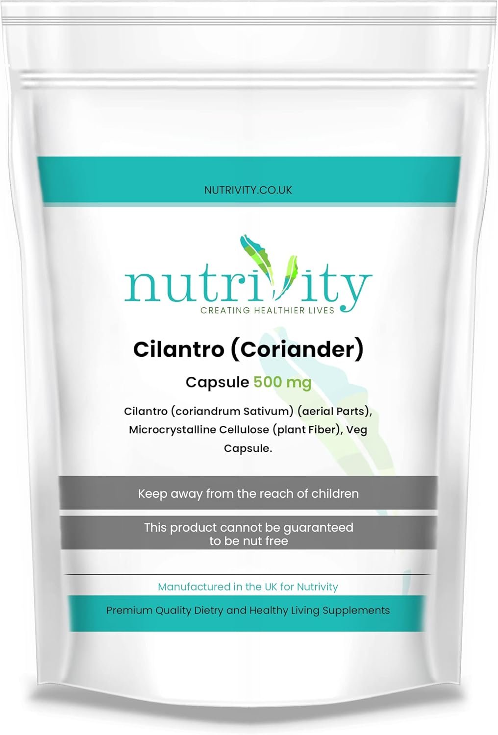 Heavy Metal Detox Supports and Aids Digestive Health Cilantro Coriander 500mg Vegan Capsule Antioxidant Healthy Skin Immune Health Manufactured in The UK by Nutrivity 60 Caps