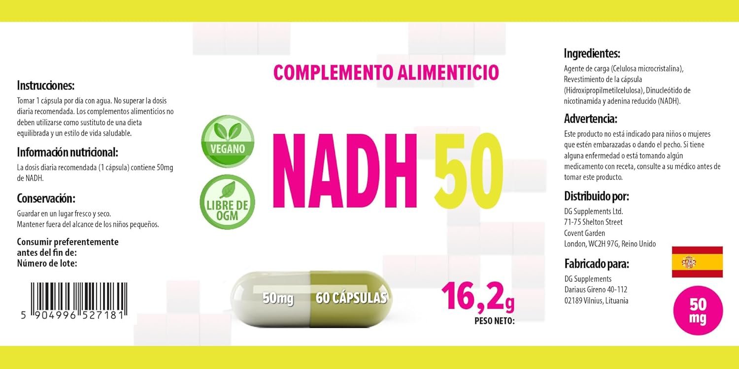✔ HIGH-STRENGTH NADH 50MG – Each capsule delivers 50mg of bioavailable NADH, a powerful coenzyme that supports energy production, brain function, and cellular repair.