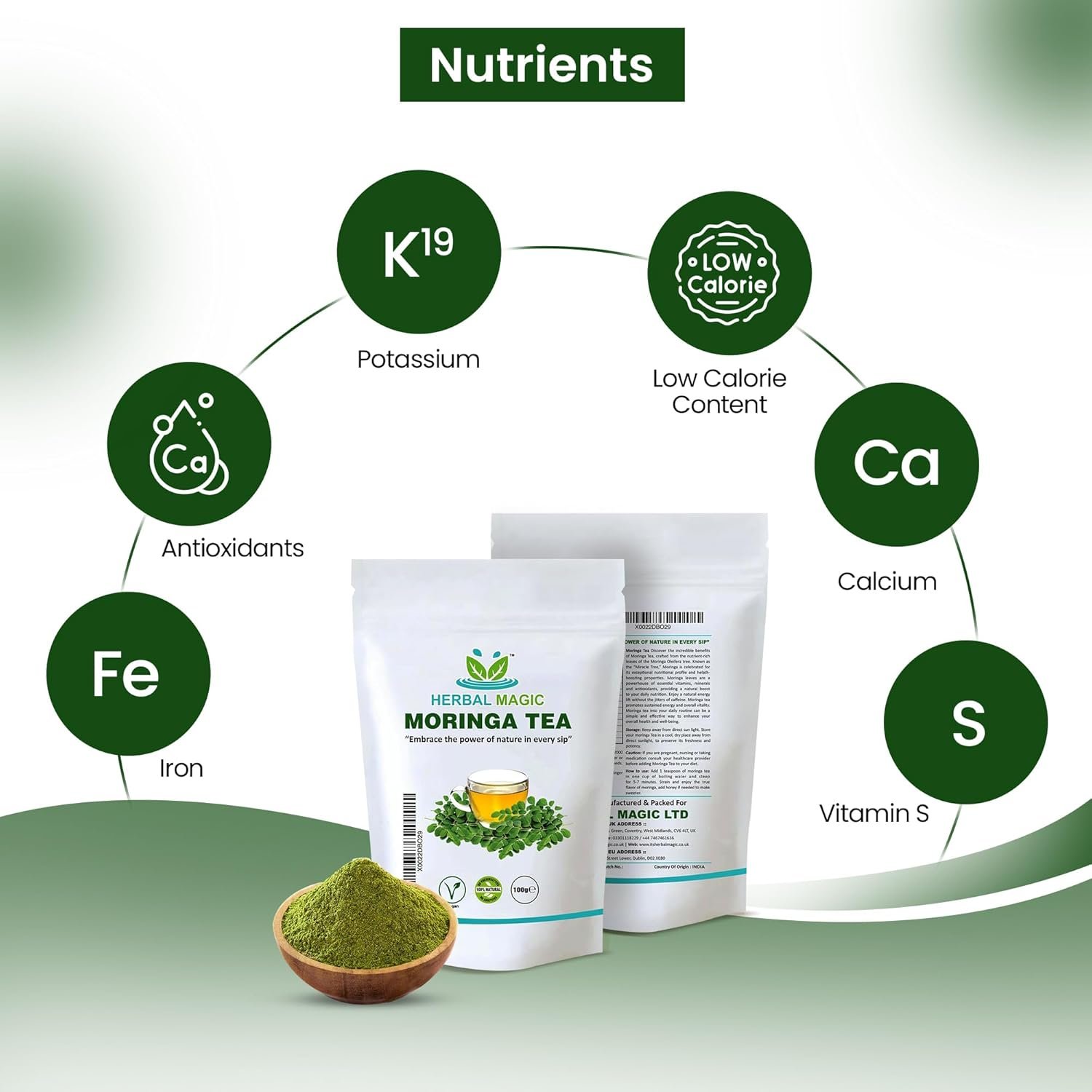𝐏𝐔𝐑𝐄 : Herbal Magic’s Moringa Tea is made from 100% moringa leaves, ensuring a natural and wholesome beverage.