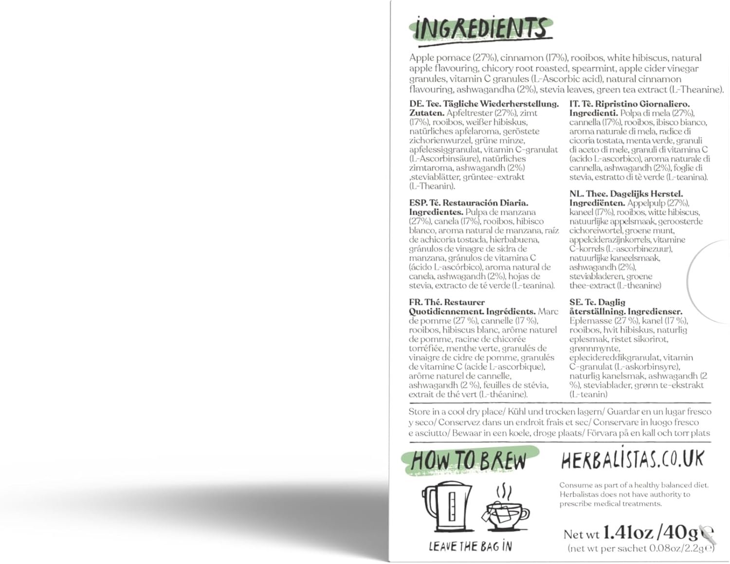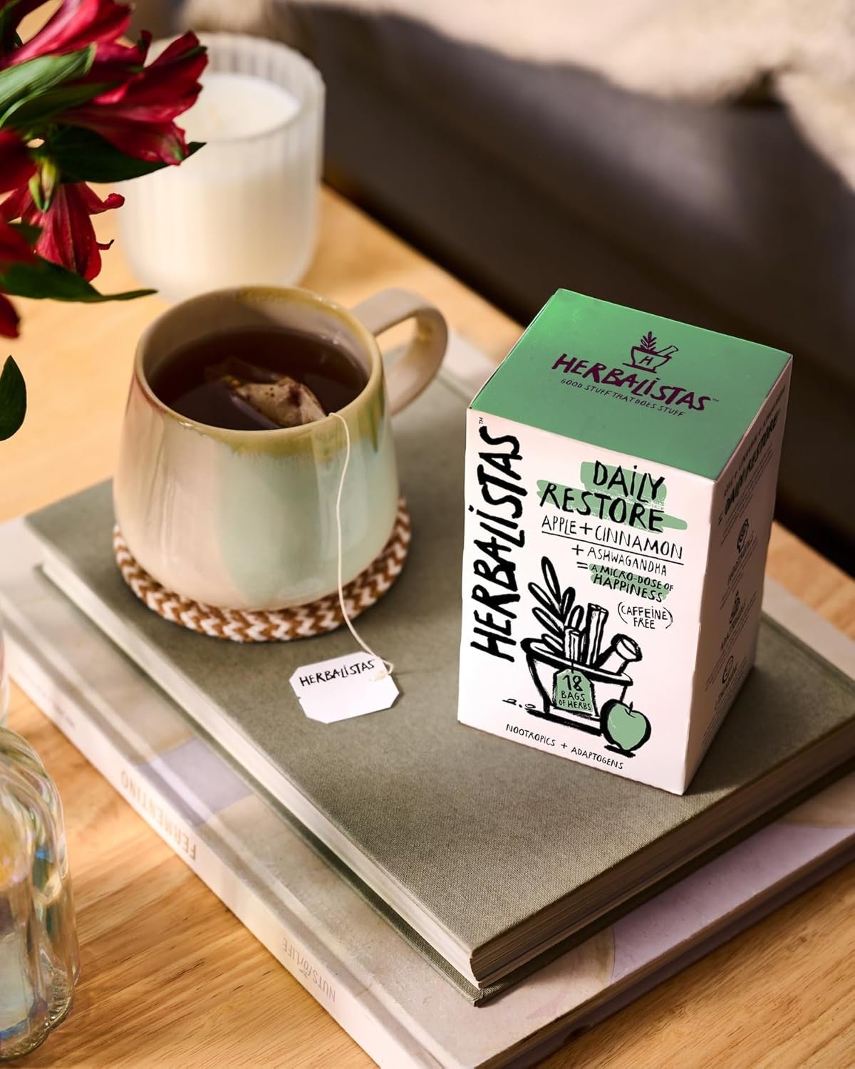 Be the first to review “Herbalistas Daily Restore Apple Cinnamon & Ashwagandha Herbal Tea 4 x 18 Biodegradable Tea Bags | Caffeine-Free | Adaptogens, Nootropics & Botanicals for Energy, Immunity & Stress Balance | Made in UK”
