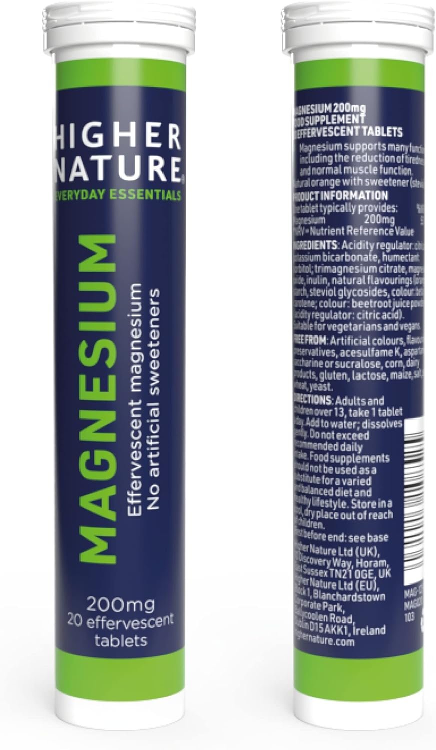 Higher Nature – Magnesium Effervescent – 200mg Magnesium Effervescent Supplement – Natural Orange Flavour – No Artificial Sweeteners – 20 Tablets