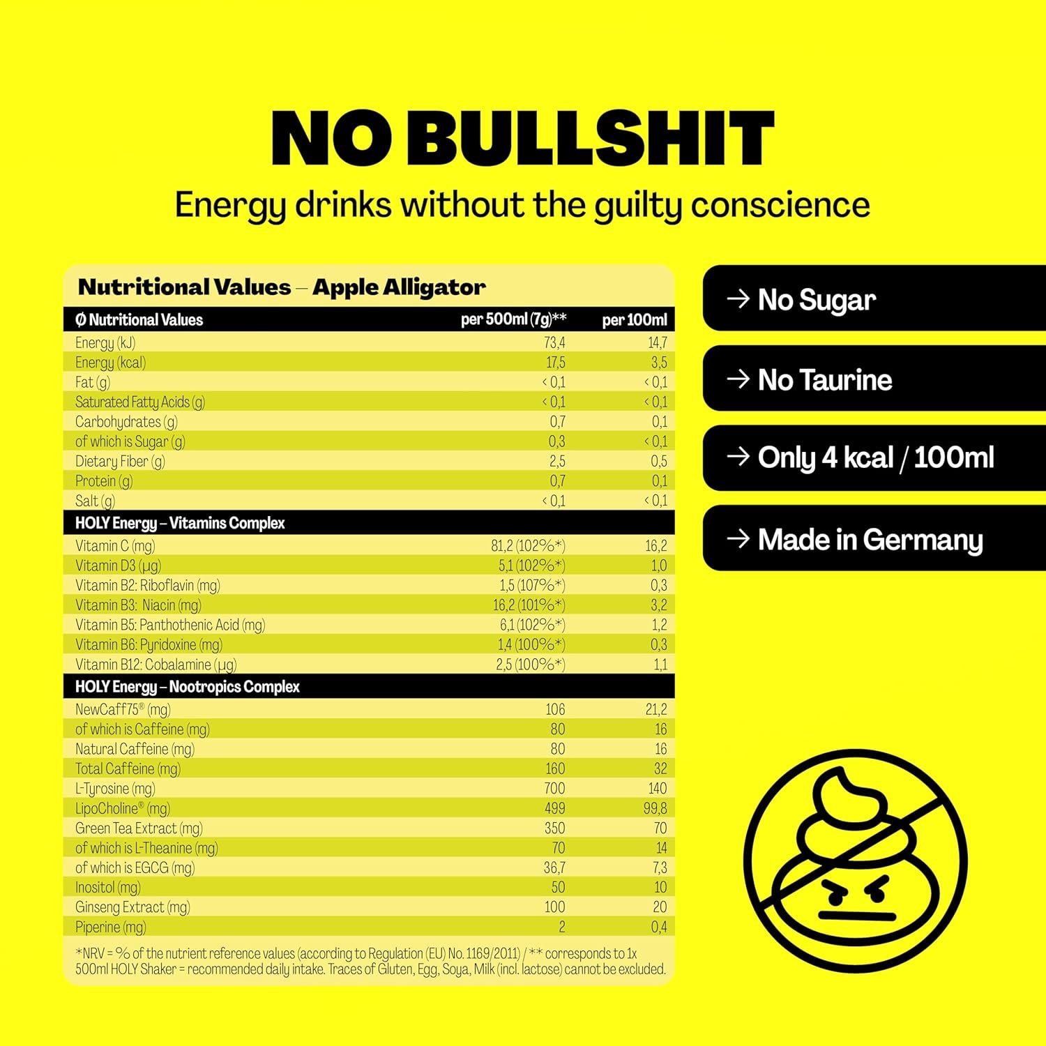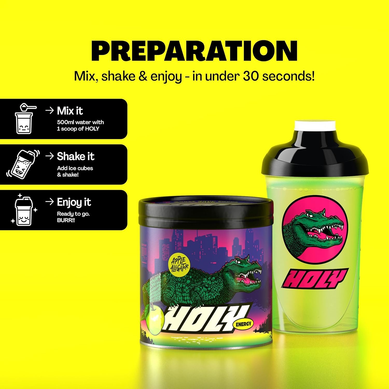HOLY Energy Gaming Booster Flavour Powder | 50 portions with NewCaff & Green Tea Extract | Focus Booster – Focus Drink | Vegan with 100% natural fruit flavours (350 grams, Apple Alligator)