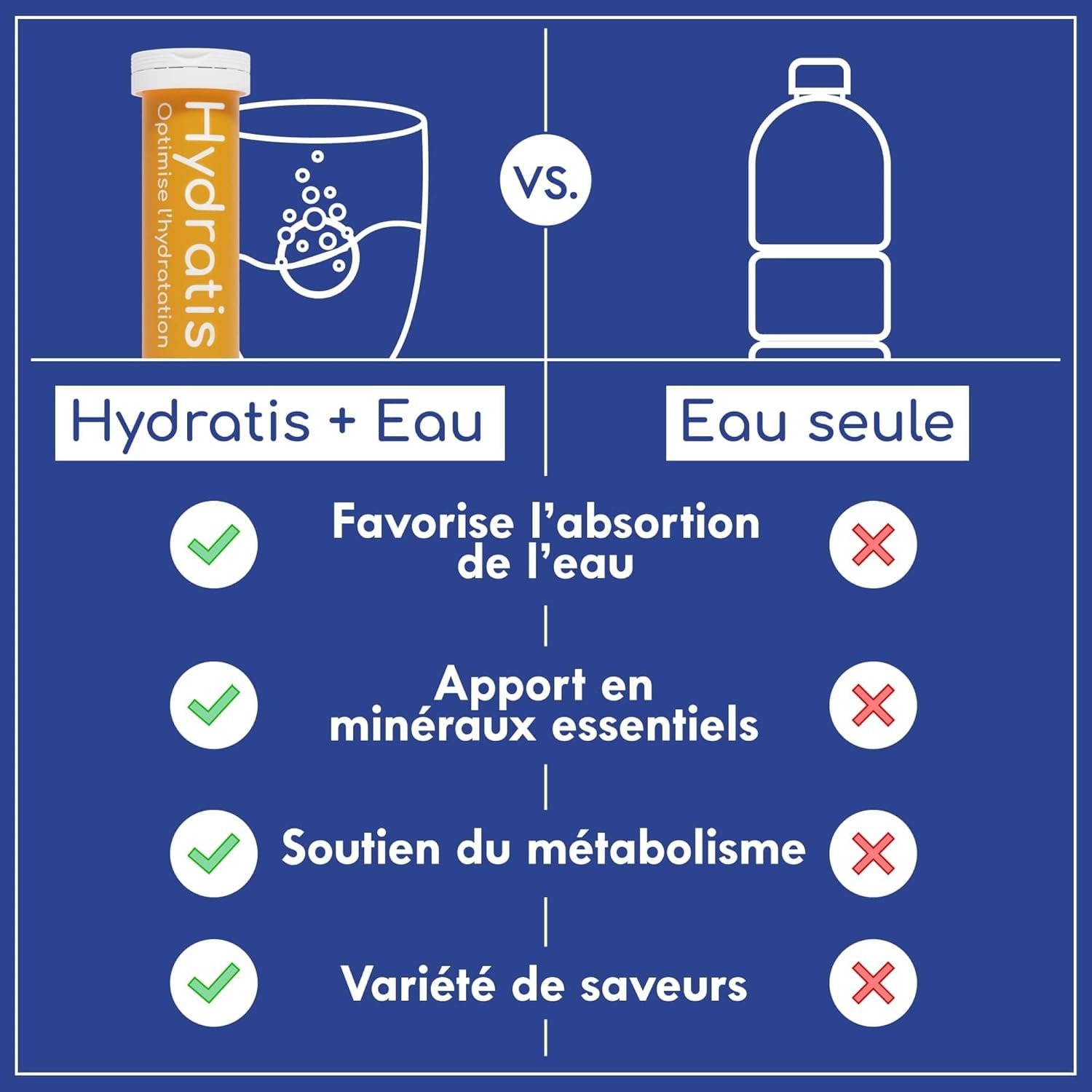 The Hydratis drink allows water to be absorbed more quickly and efficiently by the body in order to contribute to muscle recovery, reduce fatigue and combat cell stress (due to dehydration). It’s a simple and effective way to ensure optimal hydration!