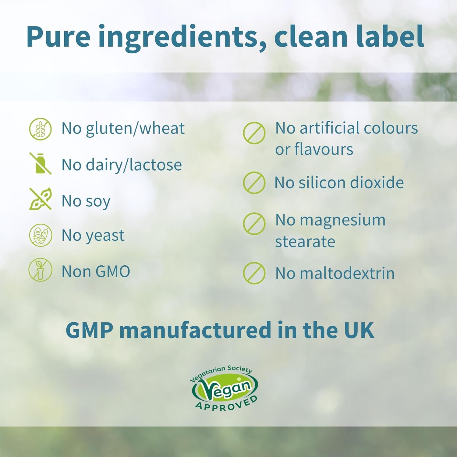 PURE & CLEAN, GENTLE ON THE STOMACH – formulated by nutrition scientists; we only use hypoallergenic ingredients with no unnecessary additives (such as silicon dioxide or magnesium stearate), lab verified, vegan, GMP manufactured in the UK