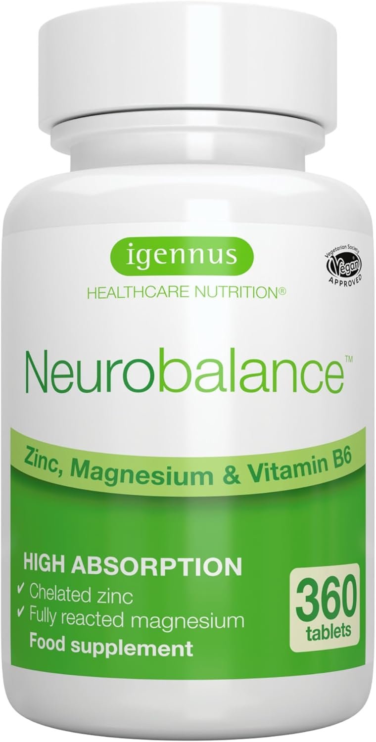 Igennus Neurobalance, High Absorption Zinc Picolinate 24mg, Magnesium & B6 for Adults & Kids, Clean Label, Brain Function, Sleep Aid, Muscle Recovery, Chelated, Vegan, 360 Tablets, 90-360 Servings