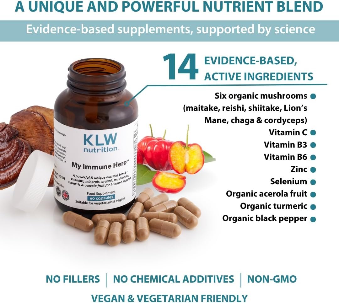 UNIQUE IMMUNE SUPPORT VITAMIN C ZINC MUSHROOMS BLEND: This complete immune support & immune defence formula was developed by an award-winning nutritionist, blending a premium list of powerful active ingredients which include vitamins, minerals, organic mushrooms, organic acerola fruit, organic turmeric and organic black pepper. NO HARMFUL MEGA DOSES – all the vitamins and minerals included are at 50%-102% NRV (Nutrient Reference Value) making this supplement safe to take long-term.