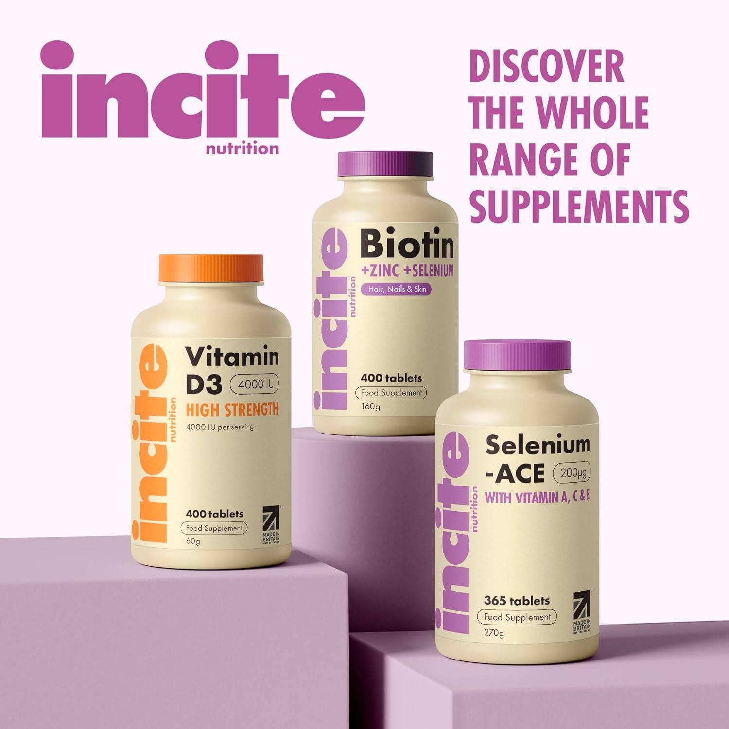 Incite Nutrition Selenium Tablets 200mcg. 12 Month Supply of Essential Mineral Supplements. Selenium Nail Supplements with Vitamins A, C and E, to Combat Oxidative Stress