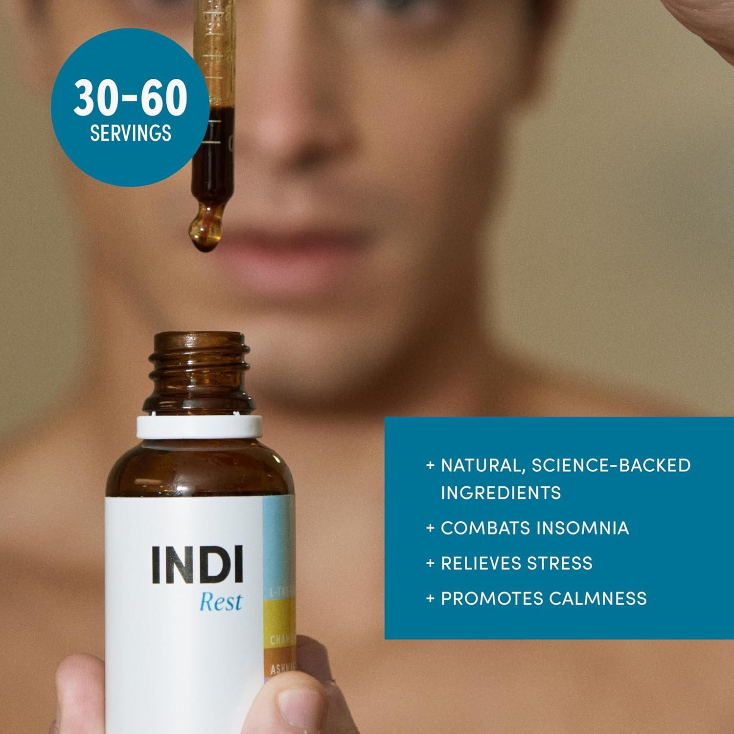 INDI Rest Natural Sleep Aid Dropper Bottle | 100% Plant-Based Insomnia Relief with Ashwagandha | Peppermint Flavour | Made in UK | 10-20 Servings