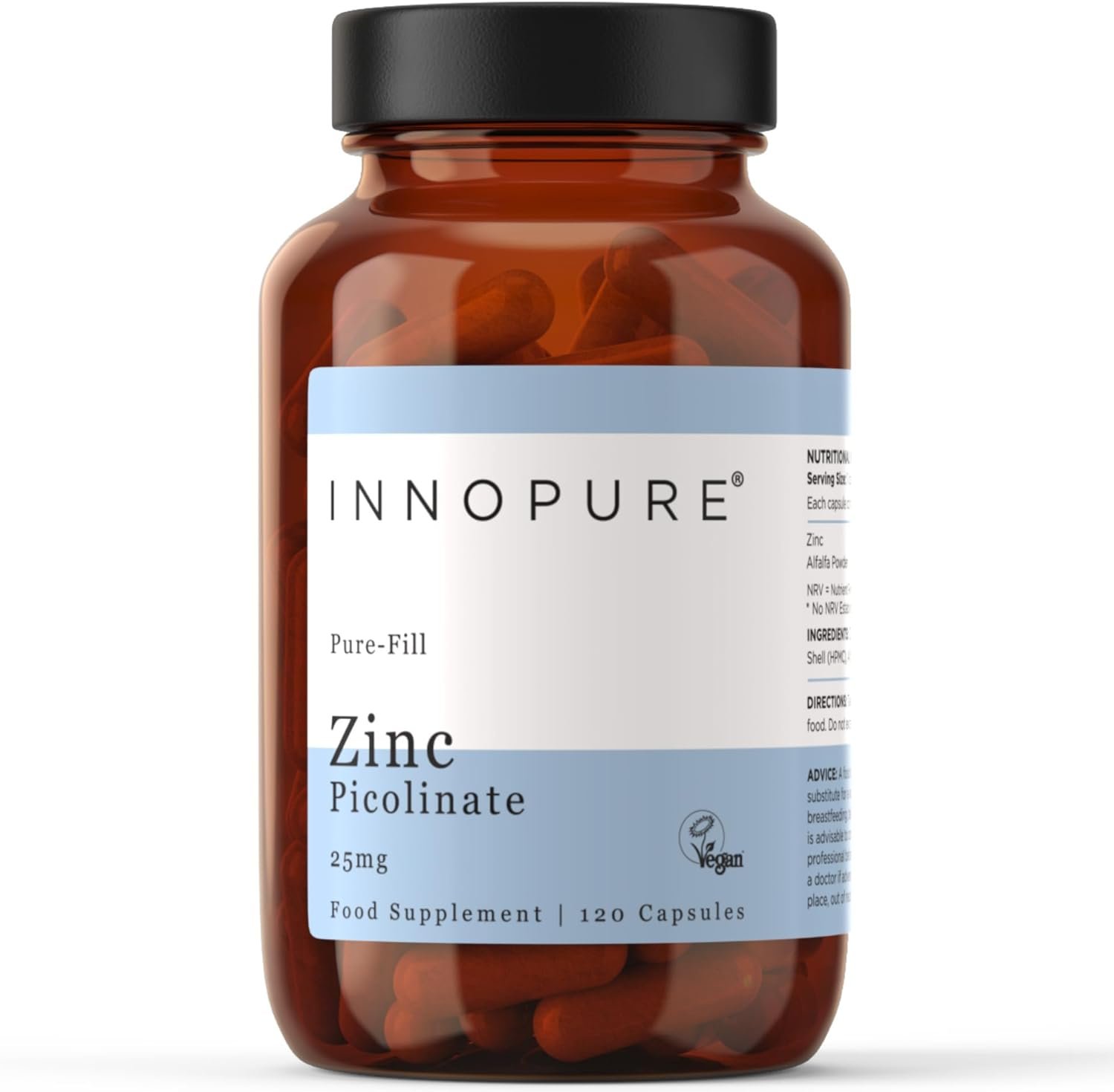 INNOPURE Zinc Picolinate Capsules, Pure-Fill (No Fillers or Binders) 25mg Elemental Zinc Supplements, Vegan Society Approved, 120 Capsules, UK Made