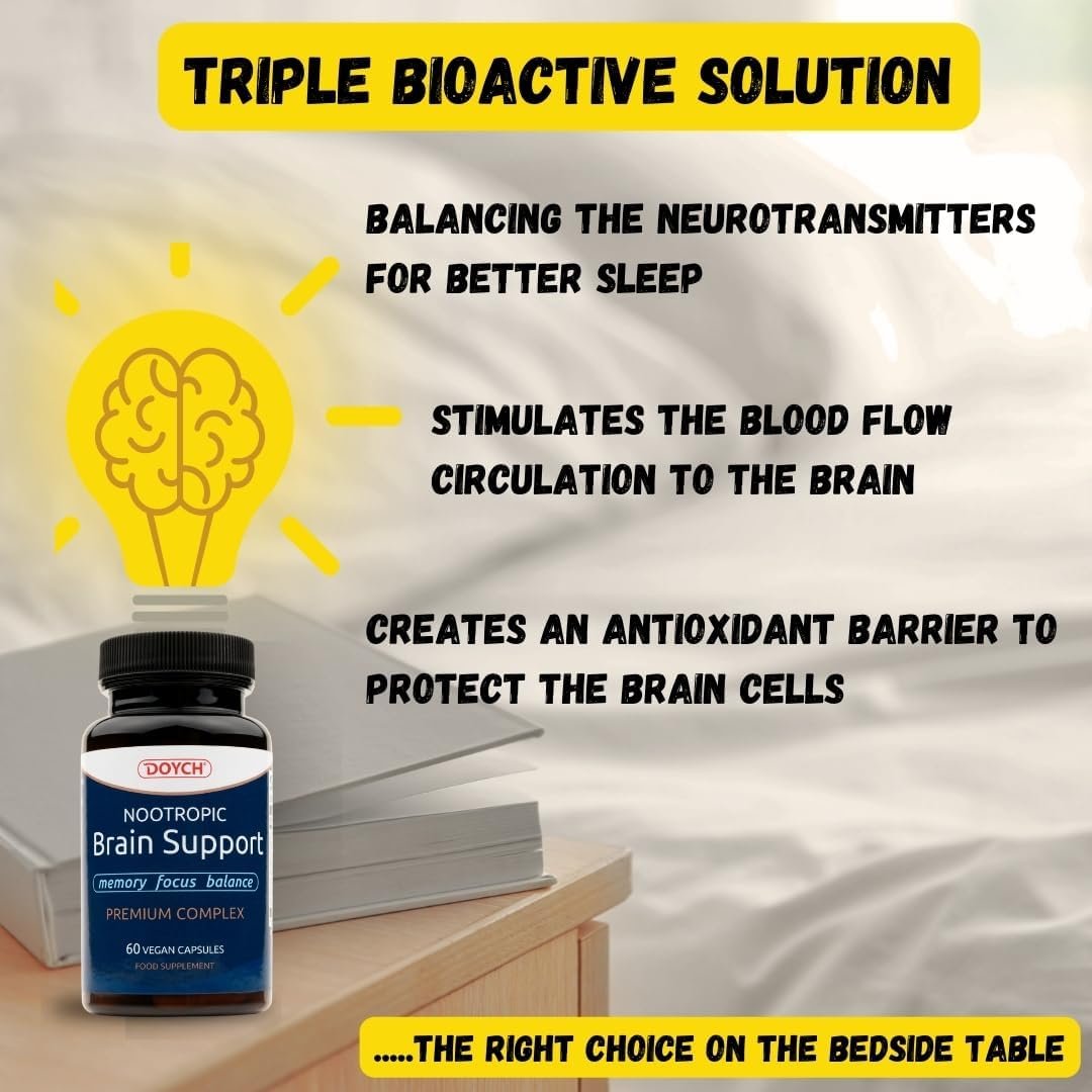 Innovative Brain Focus Complex – Supports Sleep Quality & Cognitive Performance – Bioactive Nootropics Brain Supplements – L-theanine, Ginkgo Biloba, Magnesium & B Vitamins – Natural Brain Power Set