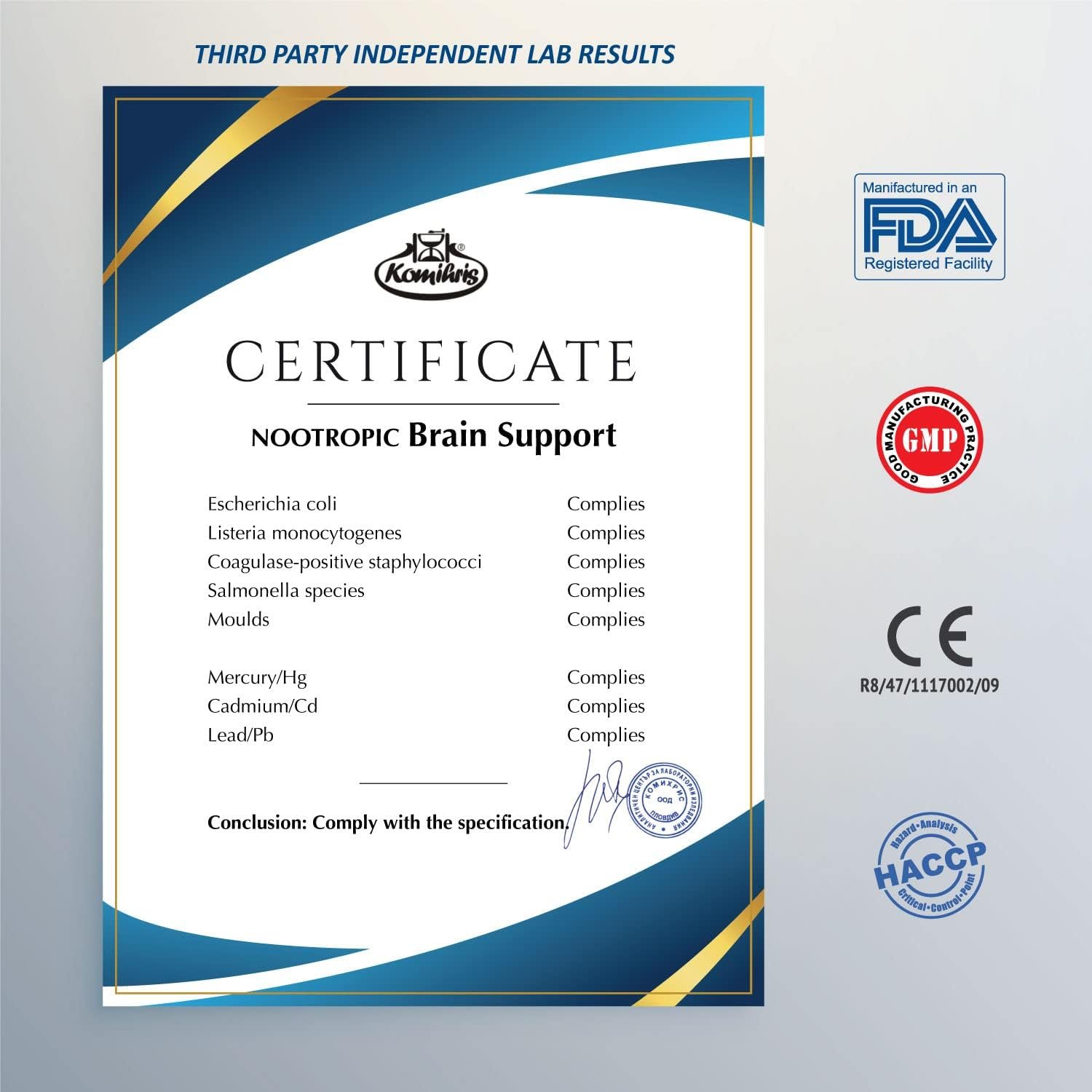 Proven safety and suitability – Providing one Month supply our Nootropics Brain supplements comes with 60 easy to swallow and easy to digest Vegan capsules. The ingredients are Gluten free, GMO, Soy and Lactose free. For consumer safety the product’s bottle is protected with under cap foil. They are also third party laboratory tested with certificate of analysis.