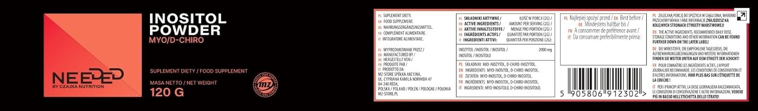 PRODUCT INFO: Our Needed Inositol Powder provides a substantial 120g per package. Each serving packs 2g of Myo-Inositol and D-Chiro-Inositol blend, suggesting approximately 60 servings per container. Ideal for consistent supplementation.