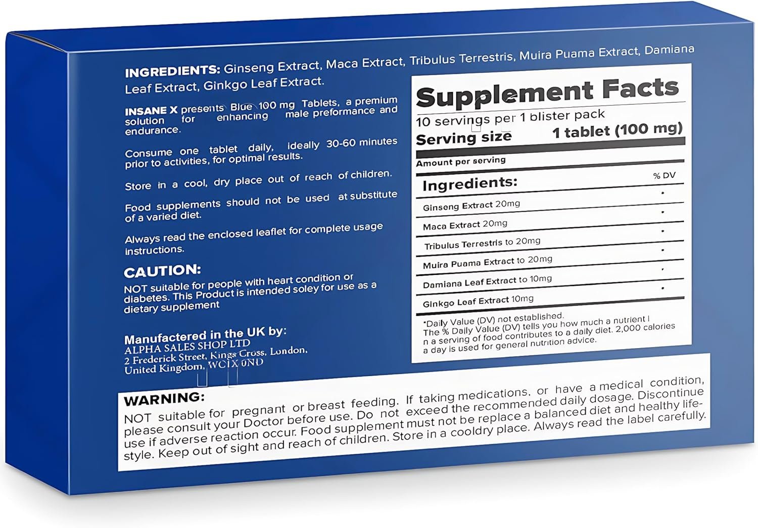 INSANE X – 20 Extra Strong Pills for Men UK – Natural Fast-Acting Maca Ginseng Tablets for Men – for Enhanced Performance
