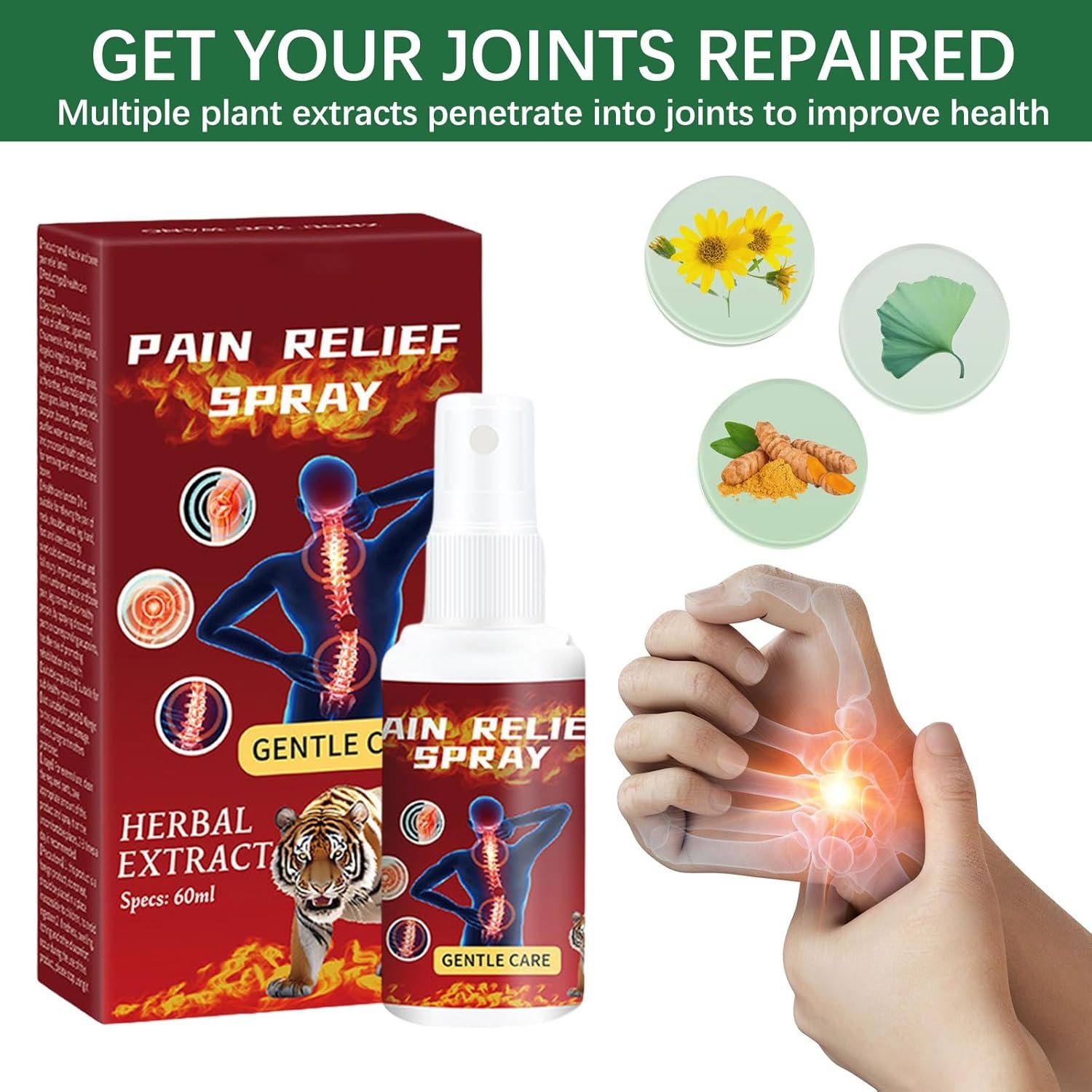 Instant Pain Relief Herbal Spray,Joint Pain Spray,Arthritis ReliefSpray,Fast Relief of Sore Muscle Pain,Joint Aid Pain Relief Herbal,60ml