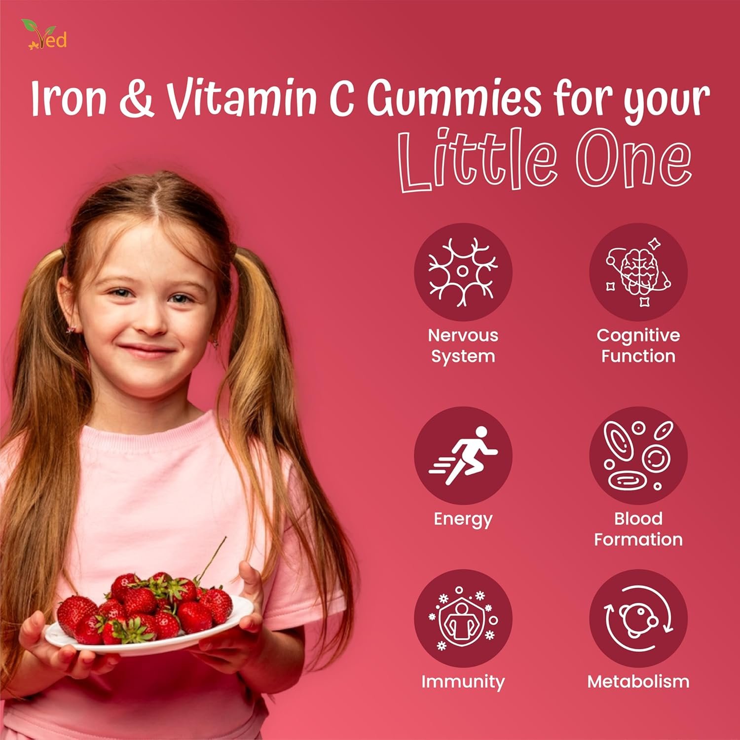 Iron Gummies Kids,15 Day Supply, Natural Strawberry Flavour, 30 Chewable Vegan Gummies, Vegetarian Friendly, Energy & Immune System, Kids Iron Gummies, GMO & Gluten Free.