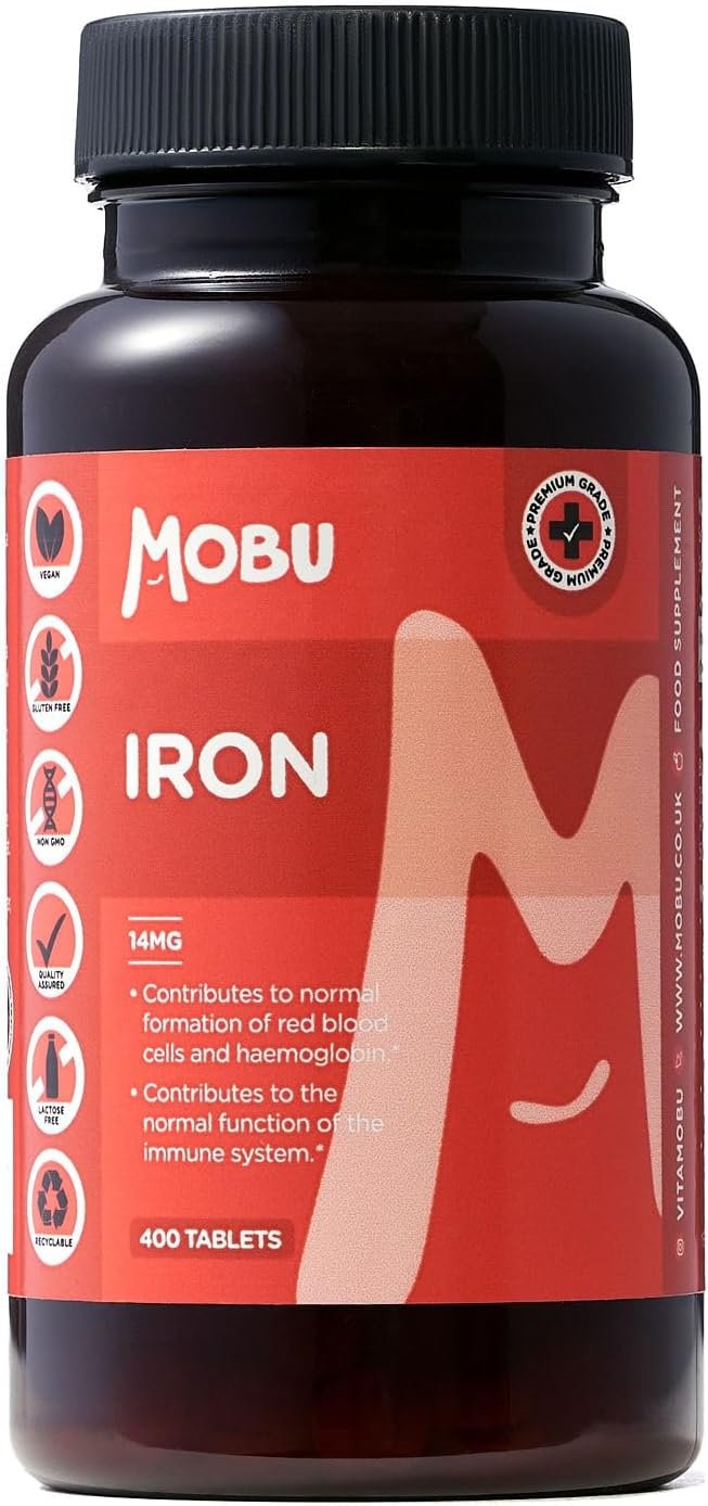 Iron Tablets 14mg | 400 Tablets 13 Month Supply | Tiredness & Fatigue Supplement | Vegan Energy Support – MOBU UK Made