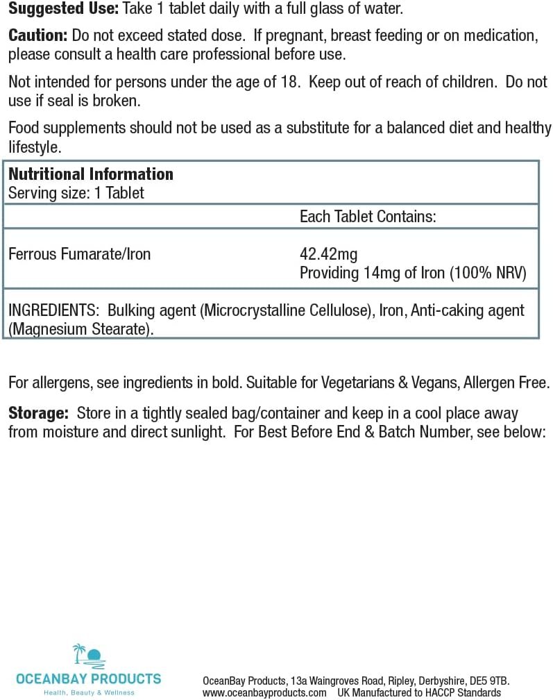 Easy to swallow Micro Tablets – 1 a day provides 14mg of Iron = 100% NRV (your daily requirement)