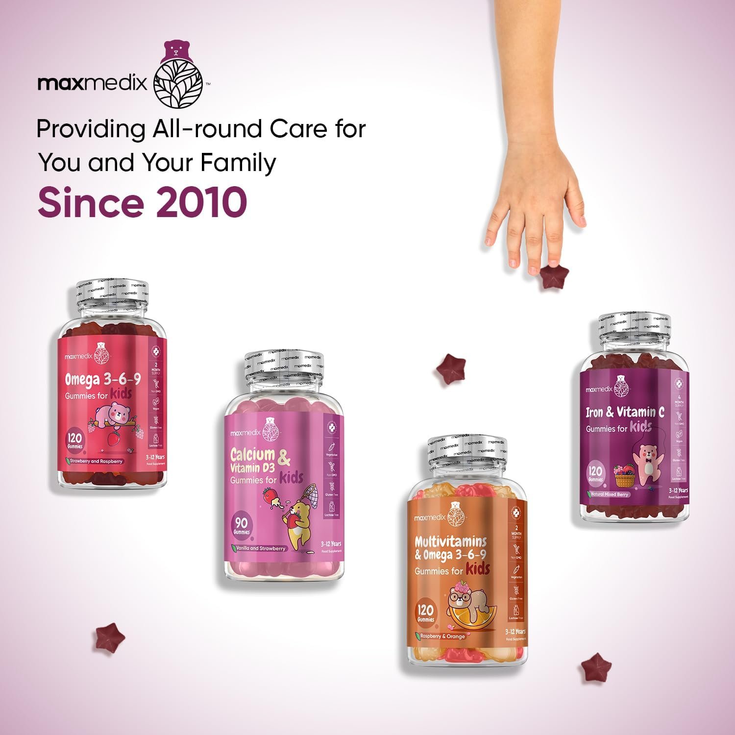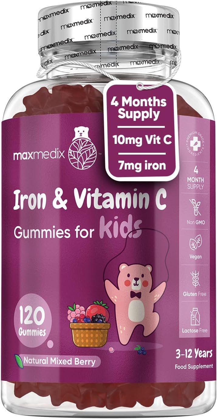 Iron & Vitamin C Gummies for Kids – 4 Months Supply – 120 Gummies – Natural Mixed Berry Flavour – Kids Iron for Energy & Immune System – Vegan Supplements – No Aftertaste