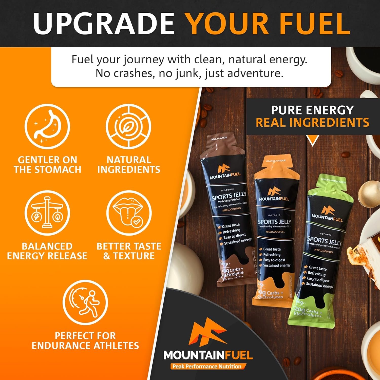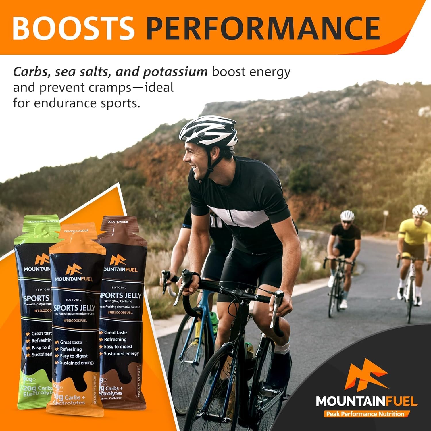 The Sports Jelly is fundamentally different to a traditional gel. Mountain Fuel selected a specific pectin which enables them to encapsulate the multi source carbohydrate in a natural hydrogel, melting in your mouth and passing through your system without any worries of GI (stomach issues), while providing a sustained energy release. The process they follow enables them to hydrate the jelly while encapsulating the carbohydrate and minerals to ensure you do not require additional fluid and the Jelly passes through your system efficiently making it very easy on the stomach – No gut bombs and perfect for sporty kids through to adults. By utilising g a hydrogel in a sports gel they have helped athletes of all abilities who previously struggled or simply could not use traditional sports gels due to the impact on their digestive systems. Having successfully helped IBD sufferers (Crohn’s & Colitis) to enjoy their racing again the Mountain Fuel Sports Jellies have been described by many as ‘game changers’.