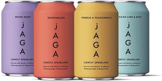 Introducing jAGA Drinks exquisite range of mushroom drinks, the perfect blend of nature’s goodness and delightful flavours! Crafted with care and precision, each drink combines the power of functional mushrooms with a variety of nourishing ingredients to elevate your well-being. These lightly sparkling drinks provide a perfect, functional alternative to an alcoholic drink. Powered by a calming and uplifting blend of adaptogenic Reishi & Cordyceps mushrooms along with Ashwagandha, Magnesium, L’Tryptophan and L’Theanine. Lightly Sparkling 4 Flavours Natural Ingredients Reishi Mushrooms Originating in Asia, Reishi Mushrooms are a medicinal fungus with a history of therapeutic use spanning thousands of years, revered for their potent adaptogenic properties that enhance the immune system. Helps to calm the nervous system Reduces stress and aids with anxiety Promotes a deeper sleep Cordyceps Mushrooms Hailing from the high mountain regions of China, Cordyceps is a functional mushroom with a rich history in traditional Chinese medicine. Its potential to boost energy levels and enhance endurance has made it a sought-after remedy for vitality and well-being. Helps to regulate hormones High in antioxidants Enhances cognitive performance Ashwagandha Ashwagandha, an evergreen shrub thriving in Asia and Africa, is a renowned natural adaptogen, prized for its ability to regulate stress and anxiety levels effectively. Benefits athletic performance Reduces inflammation in the body Improves memory and brain function L’Theanine Derived from tea leaves, L-Theanine is a naturally occurring non-protein amino acid that facilitates relaxation by mitigating stress and anxiety, offering a calming effect. Enhances sleep quality Improves memory performance and cognitive function Supports cardiovascular health L’Tryptohan L-Tryptohan, an essential amino acid, serves numerous vital functions in the body, notably contributing to serotonin production. Serotonin, known for