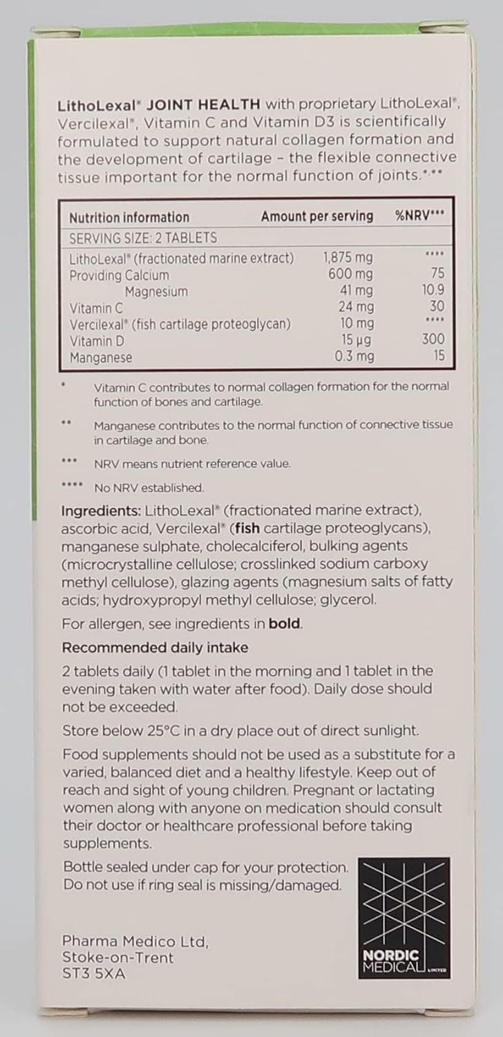 LithoLexal Joint Health has been scientifically formulated to provide support for the health of the joints and the formation of collagen – a key component of joint cartilage. Suitable for women and men of all ages. Containing a number of key ingredients; a unique multi-mineral marine plant-derived extract (LithoLexal), that provides a highly bioavailable source of calcium and magnesium – and with added vitamin d – for the support of muscle function and the health of the bones. Vercilexal, a proteoglycan complex that contains additional functional components of cartilage as present in the joints. Vitamin C and Manganese that contribute to the healthy function of connective tissues. In studies, LithoLexal demonstrated a superior effect when compared to popular alternatives across a number of categories including pain, stiffness and mobility – in addition to 6-minute walking distance measurements.