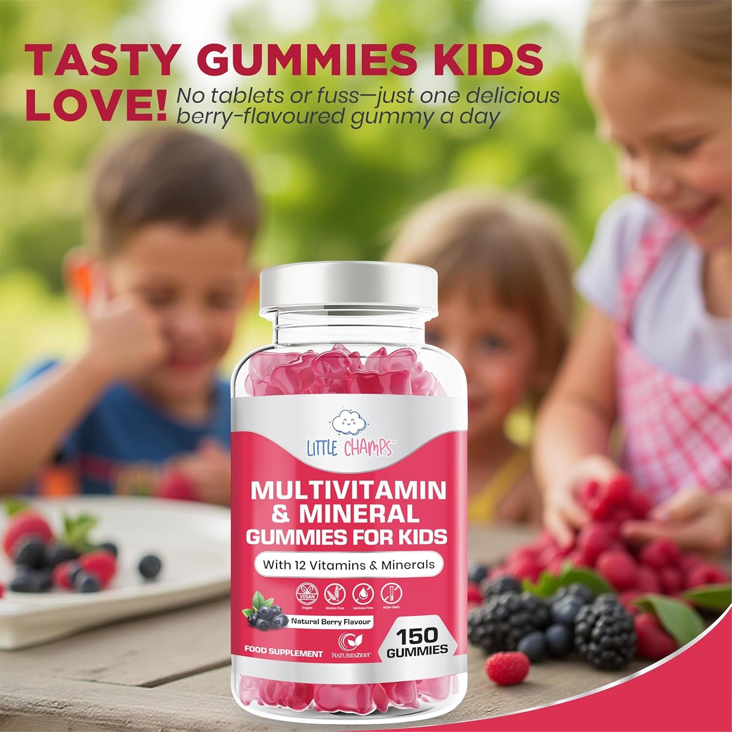 Kids Multivitamin & Mineral Gummies | 150 Chewables Gummies with 12 Essential Vitamins & Minerals | Childrens Multivitamins for Immune Support, Energy & Brain Health | Vegan | Natural Berry Flavour
