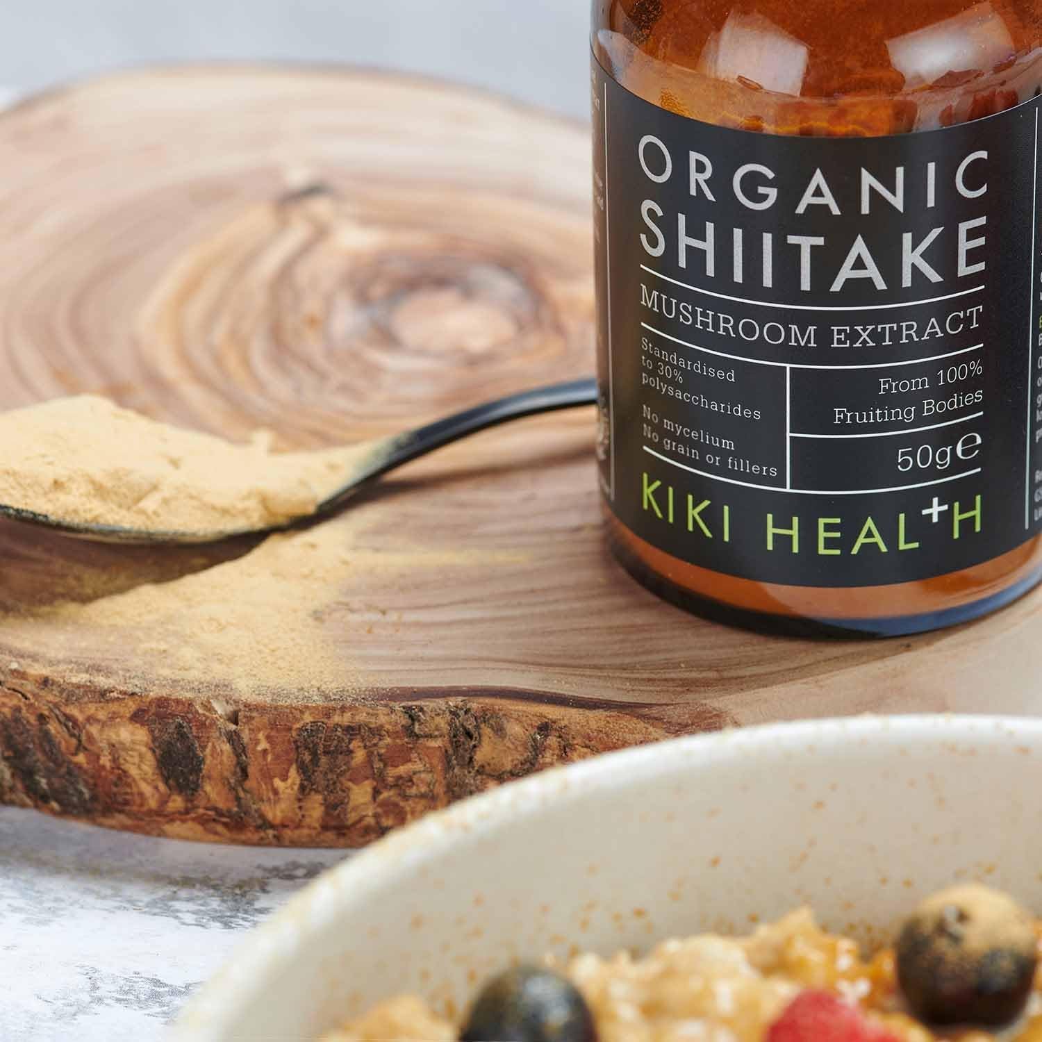 KIKI Health Organic Shiitake Extract Mushroom Powder | 30% Beta-Glucan Polysaccharides| Promotes Immune, Bone & Gut Health, Lowers Cholesterol | Organic Plant-Based Superfood Powder Supplement – 50g