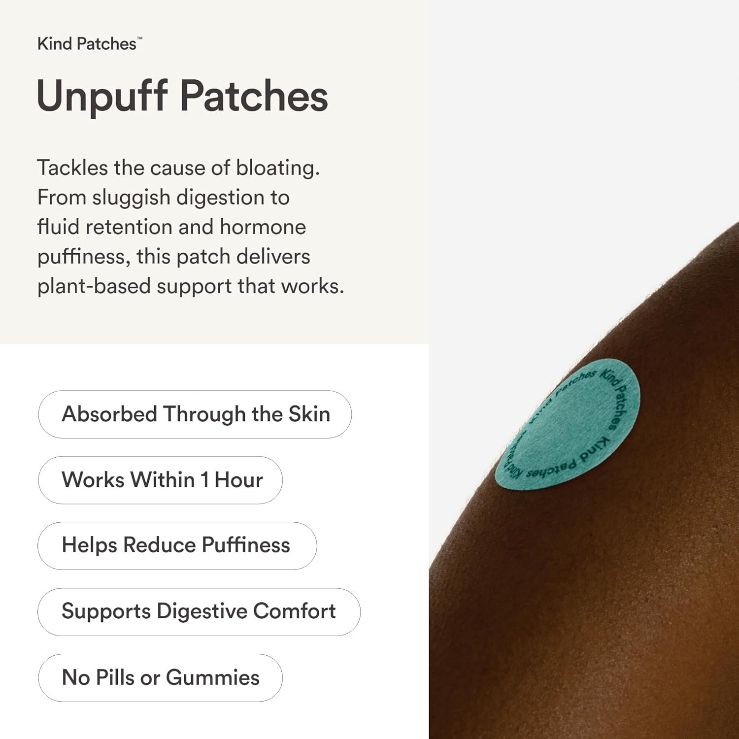 Kind Patches | Unpuff Patches | Detox Vitamin Patch with Dandelion & Ginger | Natural Herbal Supplement for Bloating, Water Retention & Digestive Support | 90 Vegan Patches, 3 Months Supply