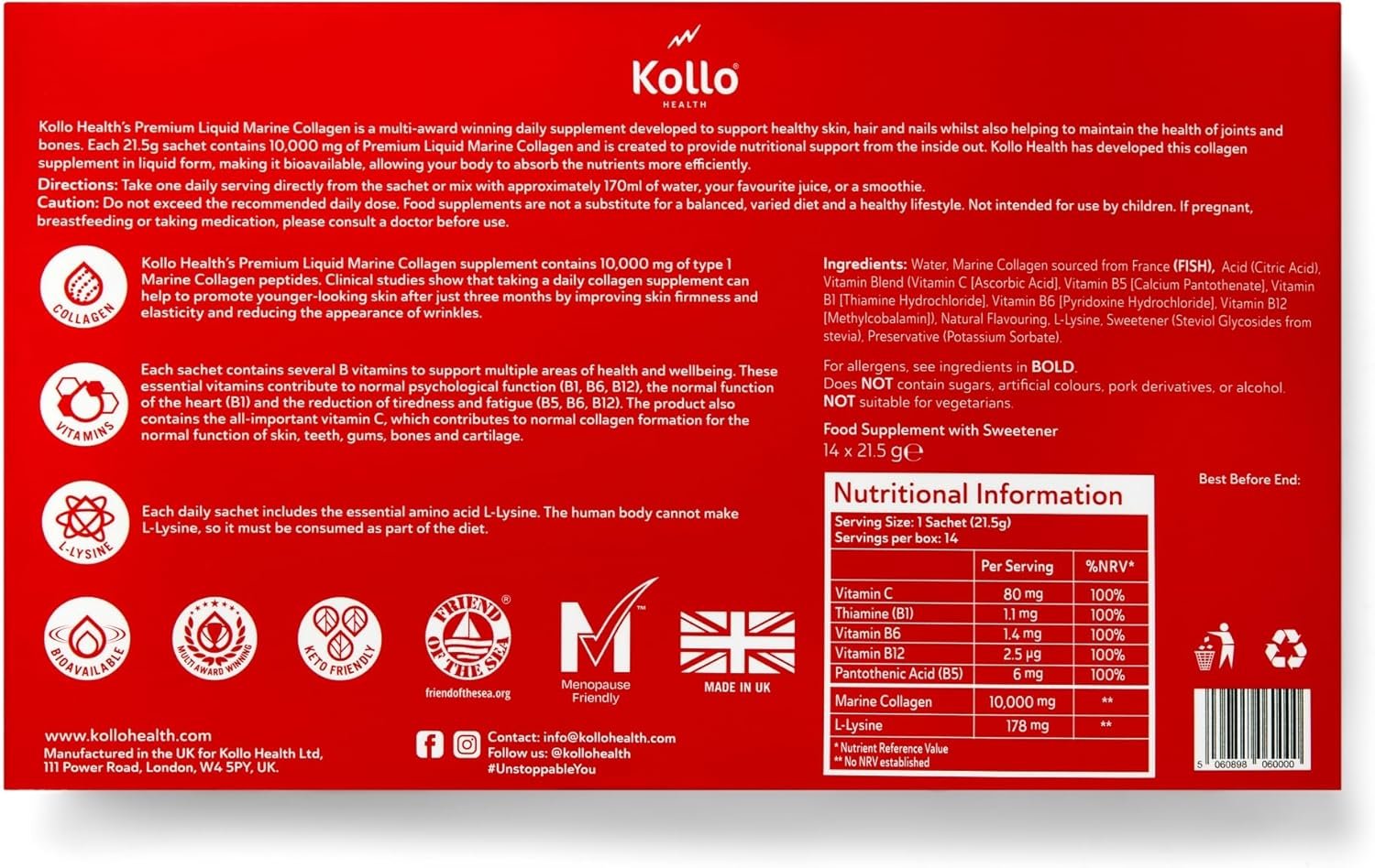 Kollo Health has emerged as one of the market leaders in the world of premium liquid collagen products. Providing a daily sachet packed with 10,000 mg of premium-grade liquid marine collagen.