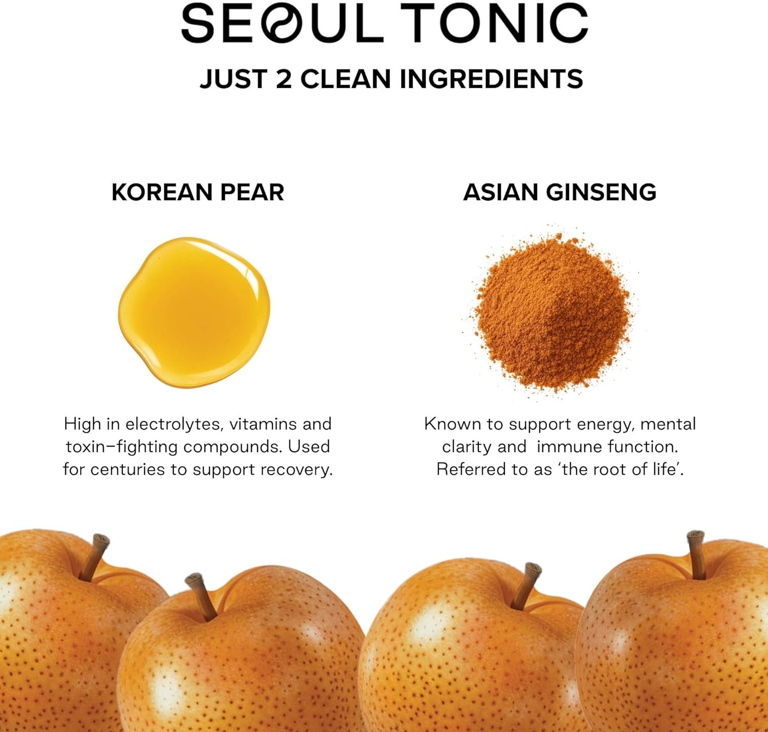 Seoul Tonic is a premium recovery tonic made from the concentrate of two ripened Korean pears. Designed for the action to Drink Before Drinking, the remedy combines Korean Pear Juice with the ancient Traditional Korean Medicine ingredient of Oriental Raisin – together creating an anti-inflammatory, high-antioxidant, liver-detoxifying 100ml squeezy shot aiming to diffuse tomorrow’s recovery. It is 100 percent all-natural, no added sugar, no preservatives.