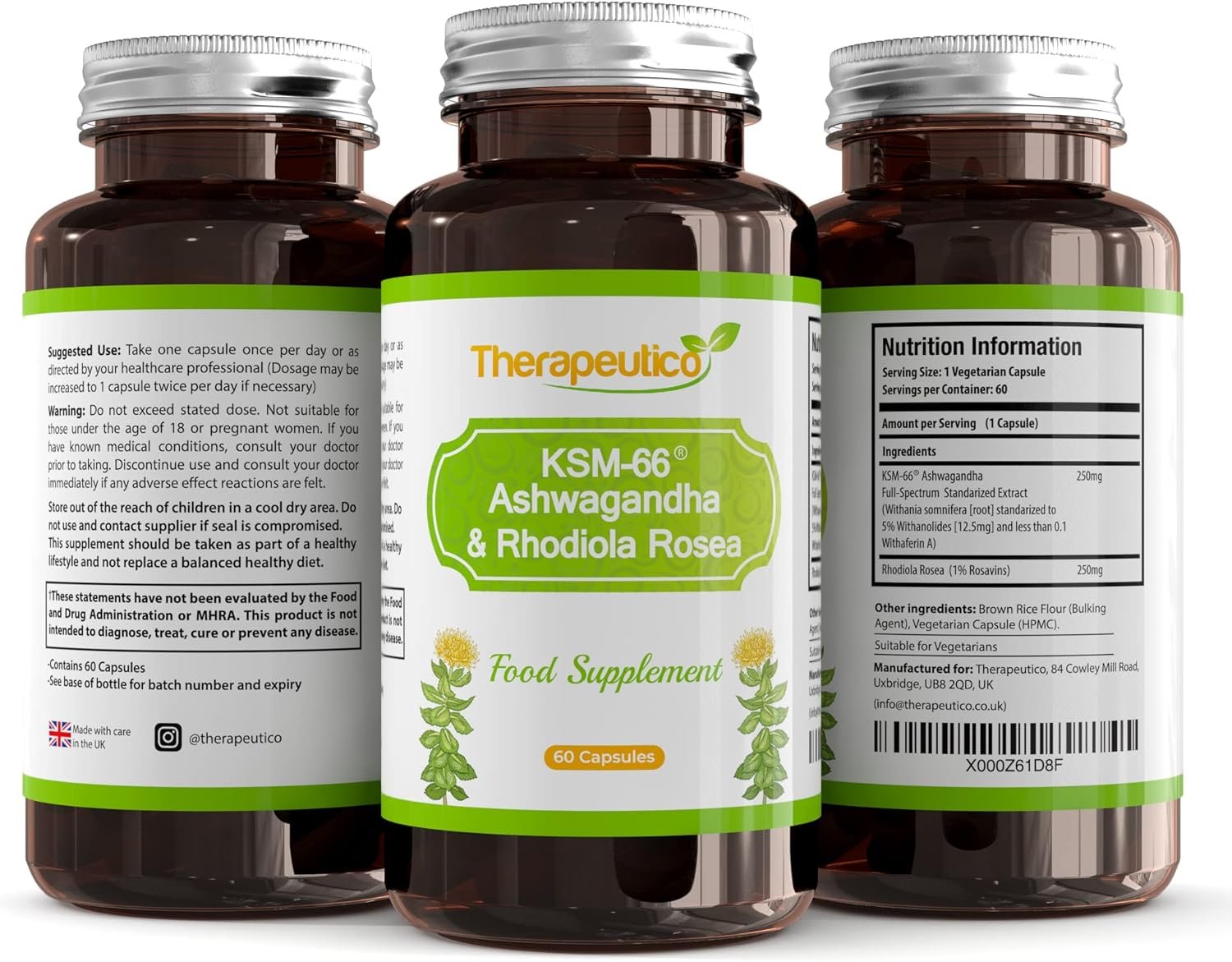 Ashwagandha & Rhodiola Rosea are both fantastic supplements, they provide a wide range of benefits, used traditionally for stress relief, exhaustion, anxiety and much more. Combining these two really does make sure you get the best there is of both worlds. We really do care about our customers and their health and hence that’s where Therapeutico started! This supplement has been created for you in ISO Certified facilities and sealed for your protection.