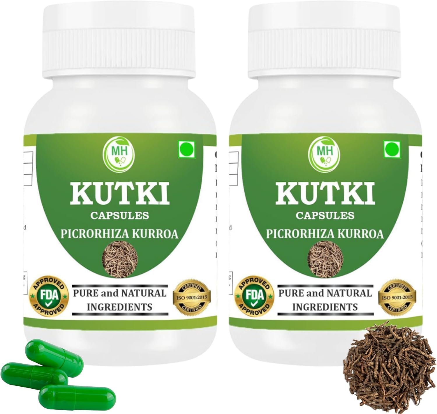Kutki Capsules 500mg | Picrorhiza kurroa | Natural Ayurvedic Herbal Supplement for Liver & Digestion Support | Vegetarian, Gluten Free, GMP Certified | 60 Capsules (Pack of 2)