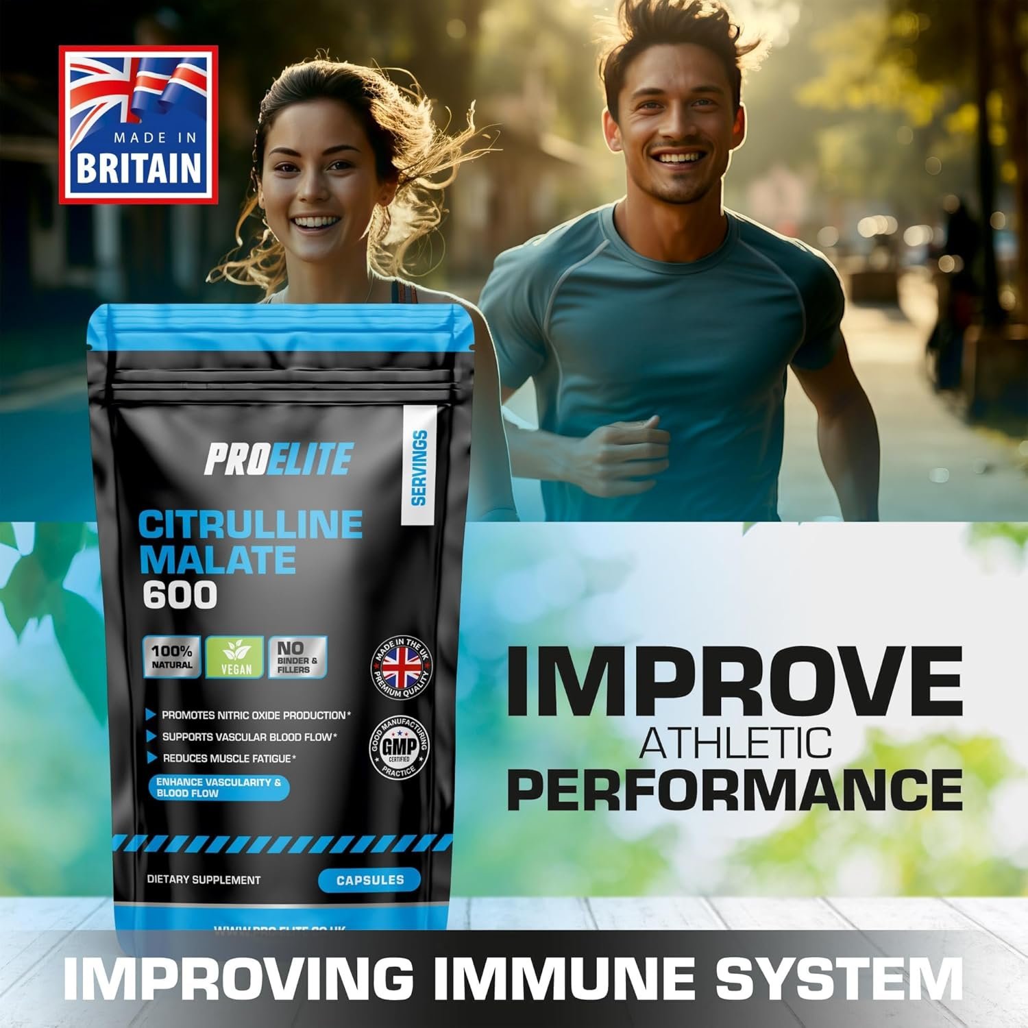L Citrulline Malate 60 Vegan Capsules | High Strength 1200mg | Boost Circulation, Performance & Muscle Recovery | 100% Natural, Preservative & Filler Free | Resealable and Recyclable Pouch by PROELITE