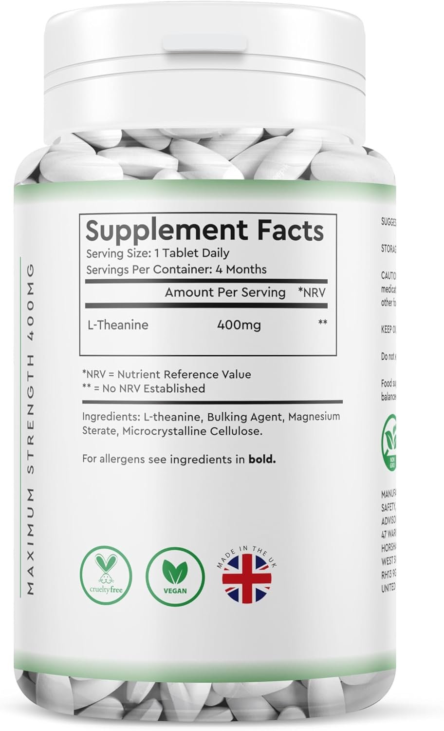 L-Theanine – 120 Vegan Tablets 400MG – 4 Months Supply – High Strength Nootropic l theanine Gluten & Cruelty Free – Pure Green Tea Extract L-Theanine for Nootropic Function